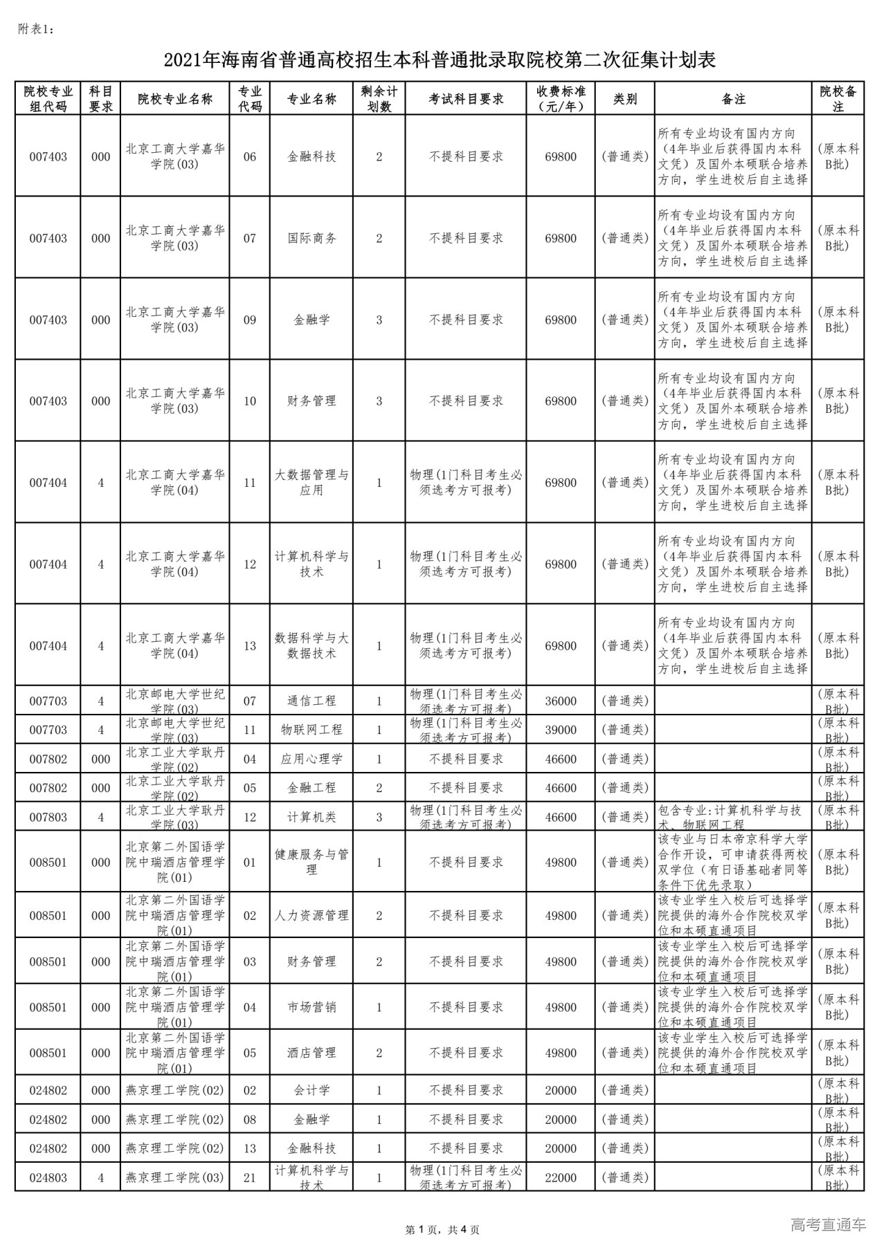 1.尚有剩余计划的院校专业组名称、专业名称、选考科目要求及剩余计划数详见附表1。