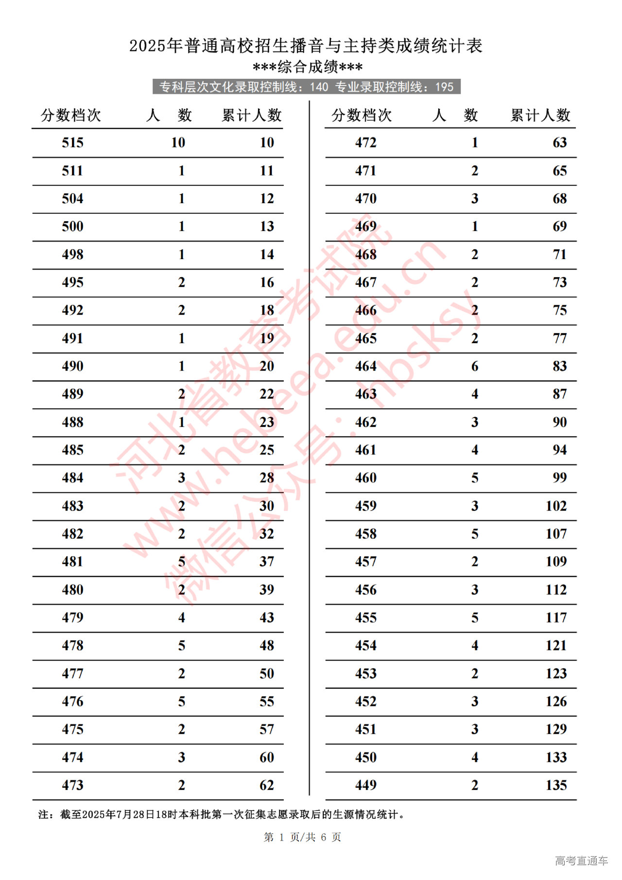 2025年河北省普通高校招生播音与主持类成绩统计表(综合成绩·专业成绩).pdf