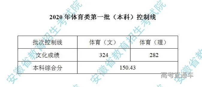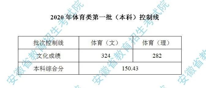 安徽2020年体育类第一批(本科)控制线