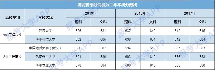 以下是这几所高校近三年在湖北省本科批最低录取分数线汇总,供家长和考生参考: