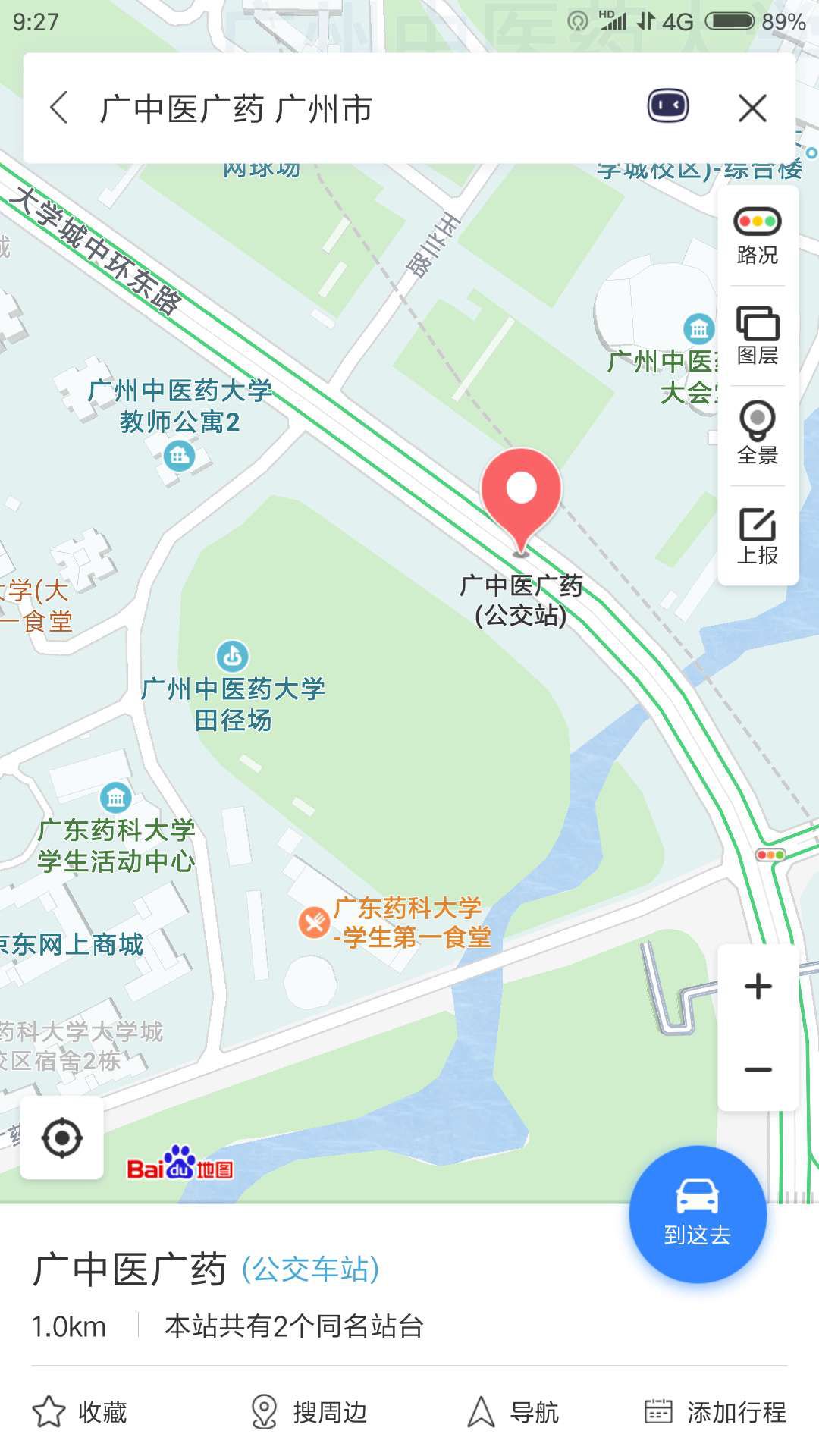 2、乘坐地铁4号线到大学城南站下车,C出口坐公交环线(1元)或番201或番202(2元)到广中医广药站下车到学校。若想步行过学校的同学可以选择D出口直接往前走经过华工天桥再到广药天桥就到生活区。