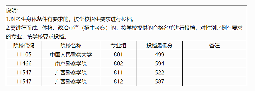 广西2025本科提前批其他二类院校专业组第一次征集投档最低分数线(首选历史科目组)