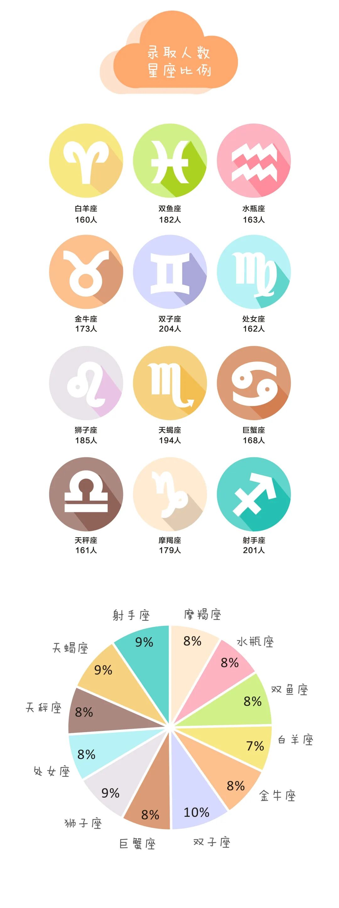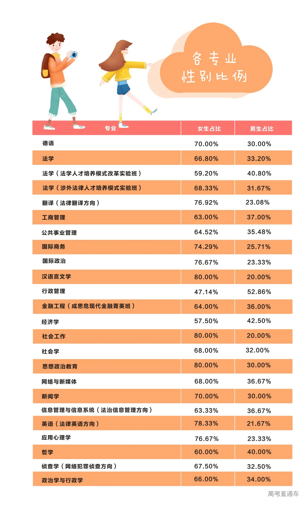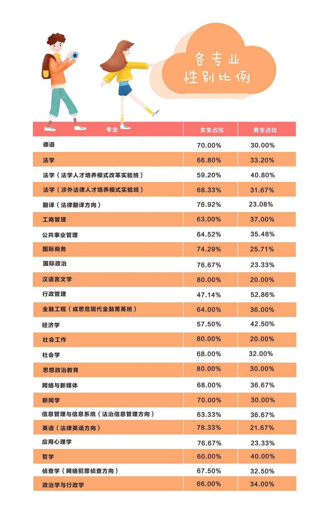 2020年, 法大共有2132名小萌新 来到校园在美丽的军都山下 开启大学四年的新生活! 56个民族,56枝花 今年法大新生的民族分布 也呈现出了多样化的态势 你的班上,有少数民族同学吗? 2020级新生已经是“00后”的天下, 绝大多数的本科新生, 都诞生在2000年以后 你们是真正的“千禧一代” 不过今年最小的本科新生只有15岁? 后浪们,今后看你们的啦! 我们为大家统计出了 各个专业的男女比例, 不难看出, 法大今年依旧是“女多男少”的状态, 各个专业平均男女比例大约是3:7, 男同胞们,守护女同学的重任 今后就交给你们啦! 2020级新生的姓氏中 王、李、张、刘 占据了前四位 看看你的高中母校 有没有上榜? 今年的小萌新 星座比例相对平均 人数最多的是双子座 人数最少的是白羊座 你是什么星座呢? 四年四度军都春,一生一世法大人 希望2020级的小萌新 都能在美丽的军都山下 收获美好的四年大学生活 加油,法大人!