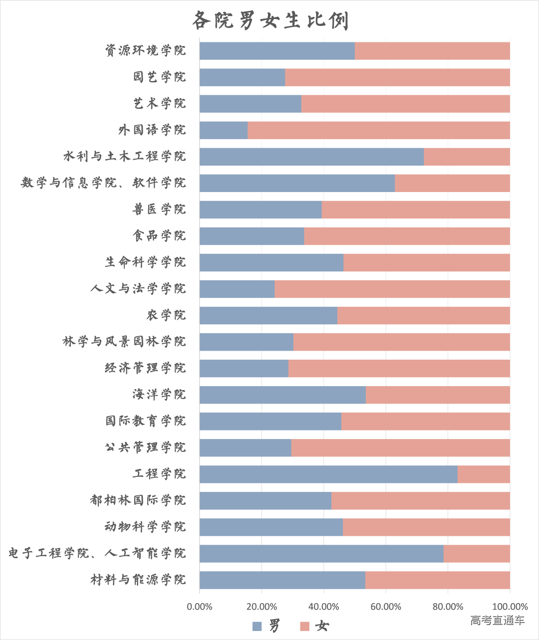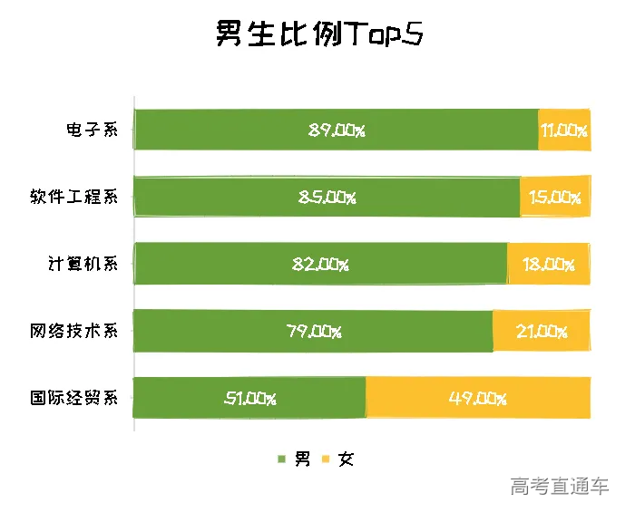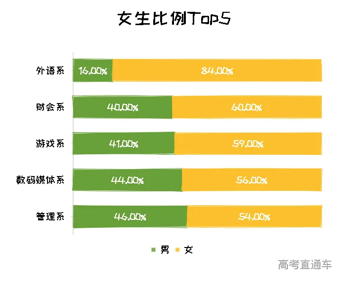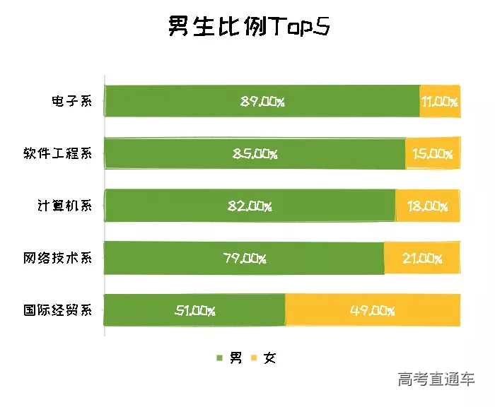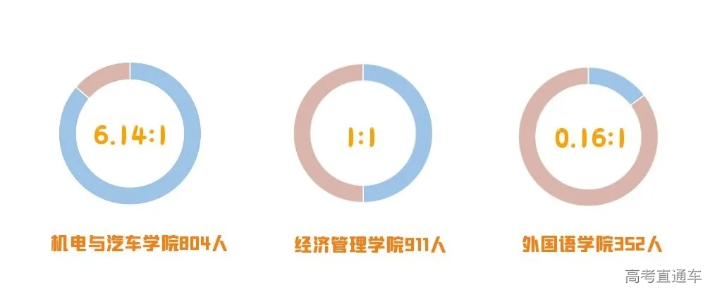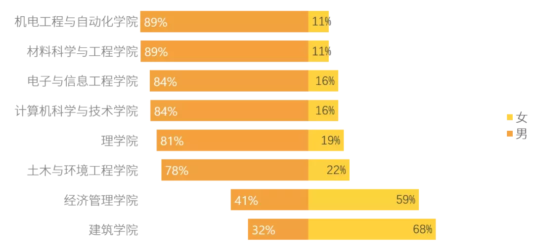 毫无悬念的是,男女比例出现两极分化趋势,文科类学院普遍女多男少,反之理工科类学院男多女少。
