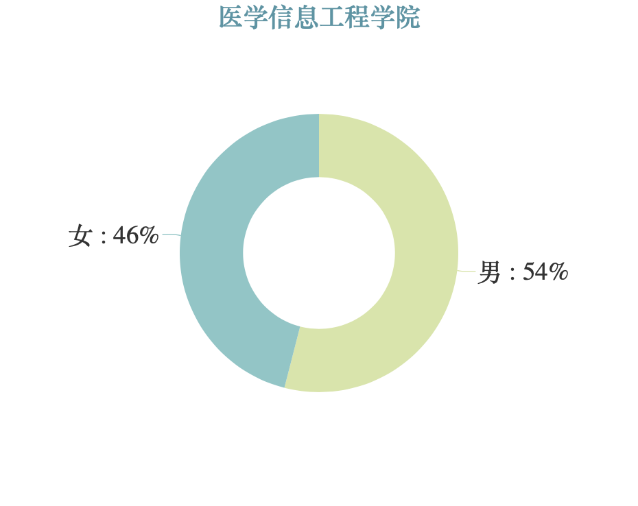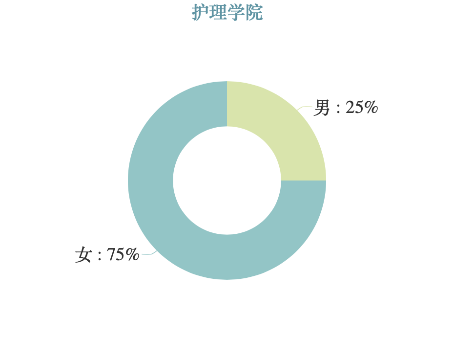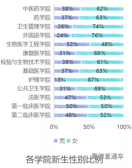 在各个学院中,护理学院女生占比最高,其次为外国语、卫生管理学院。