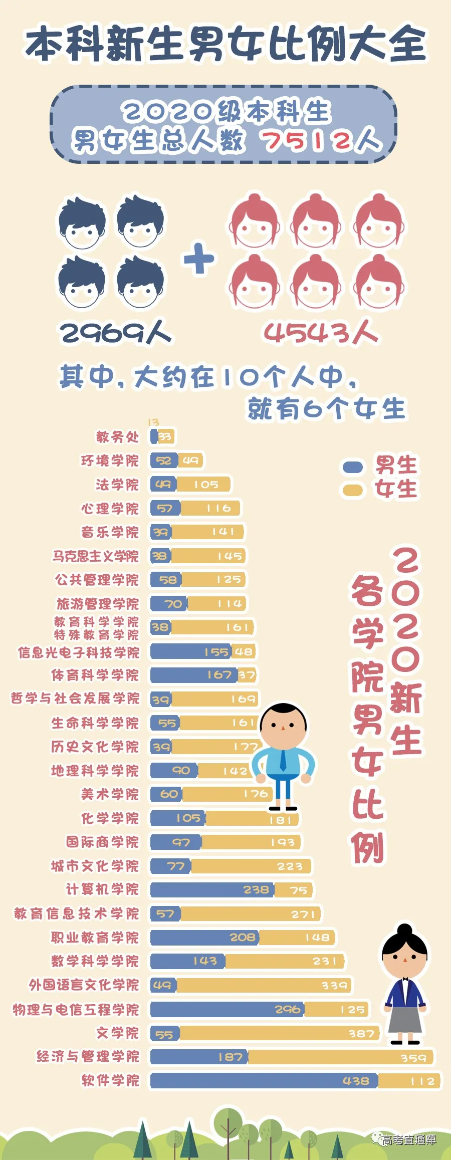 近日,全国各大高校陆续秀出了2020年新生大数据,涵盖新生总数、男女比例、新生年龄、民族构成、生源分布、新生姓氏与名字等内容,其中男女比例可以说是同学们最为关心的话题(毕竟关乎着自己大学4年能不能顺利脱单)。