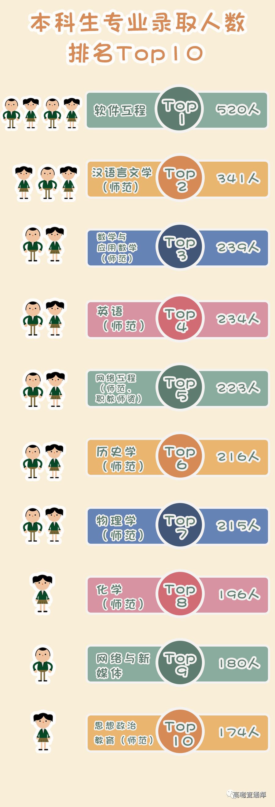 令人感到意外的是华师录取人数最多的专业,竟然不是师范类专业,而是软件工程专业人数最多。