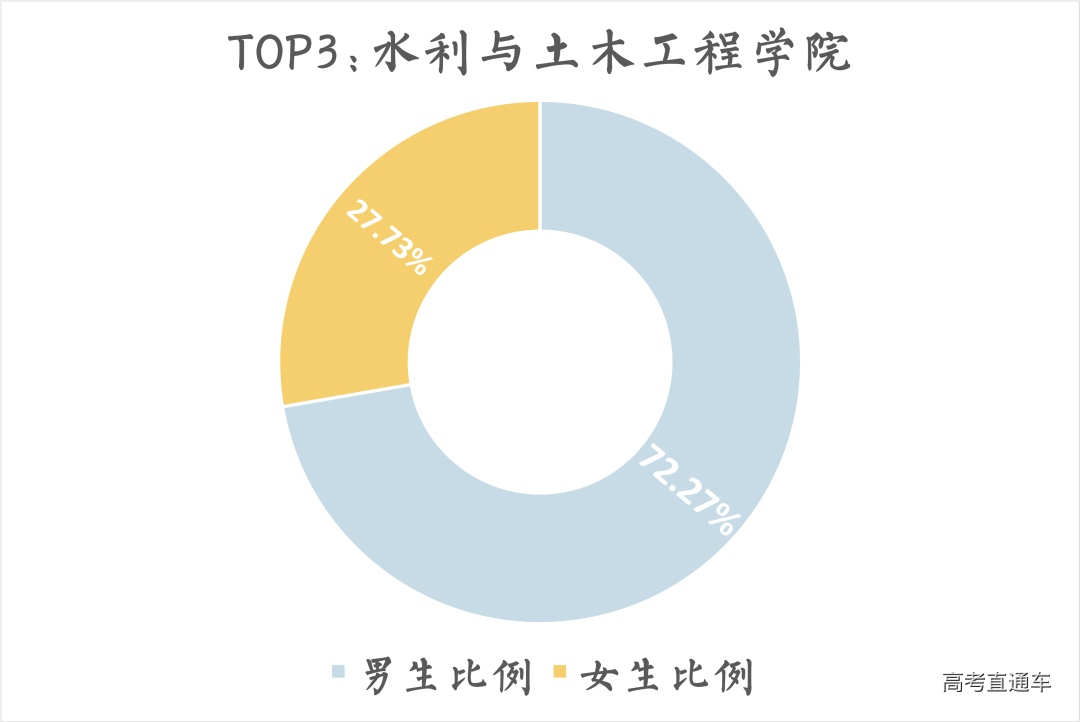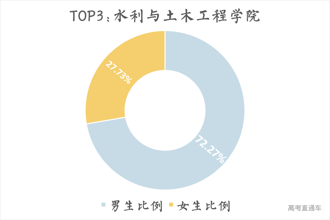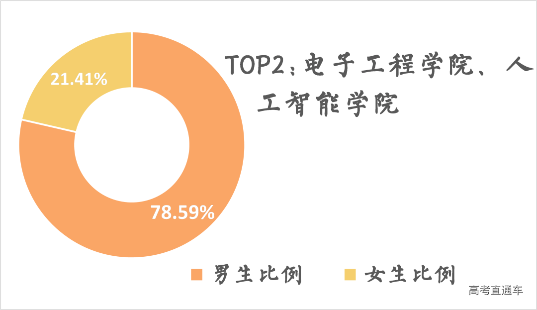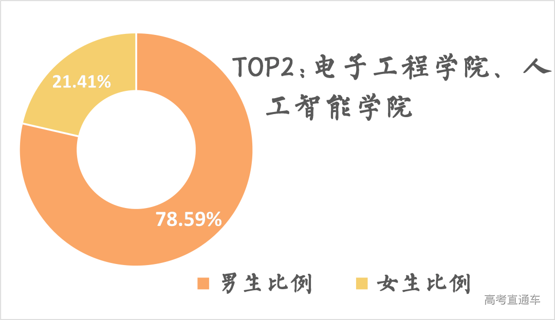 男生占比最多的前三甲学院分别是:工程学院,电子工程学院、人工智能学院和水利与土木工程学院。