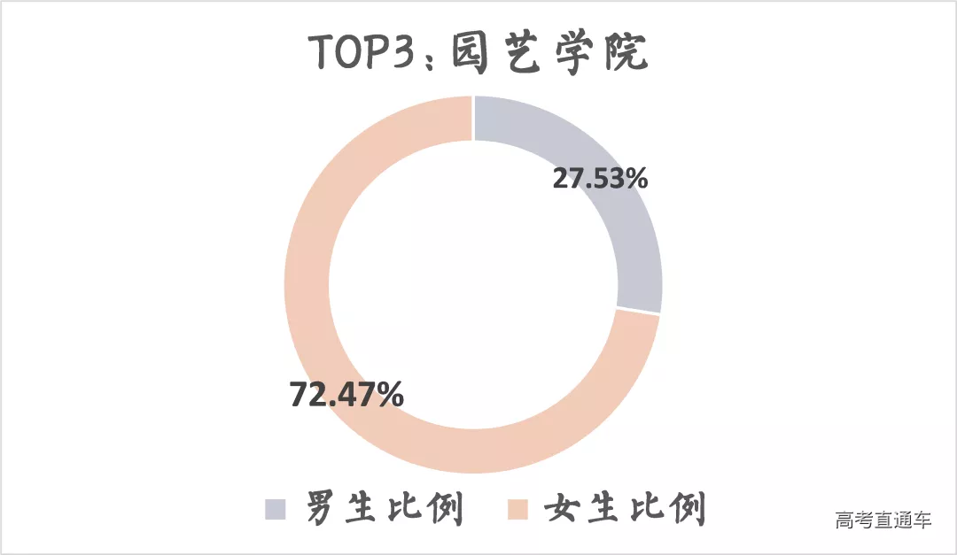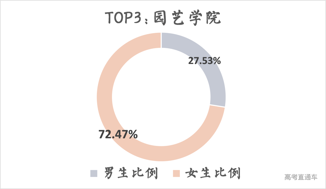 女生占比最多的前三甲学院分别是:外国语学院、人文与法学学院和园艺学院。