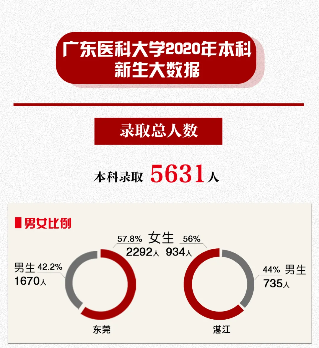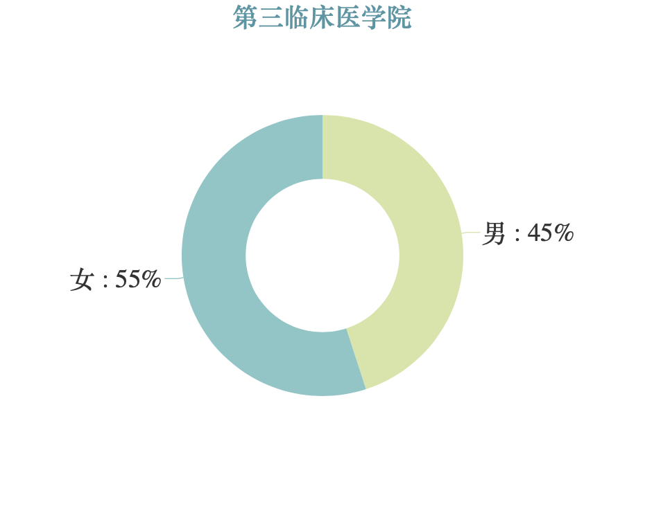 2020年,广州中医药大学共录取本科新生2871人,其中男1168人,女1703人,总体男女比例约为1:1.42。 大家最好奇的当然是男女比例问题,虽然广中医的女生较多,但依旧有两个学院还是男生人数领先的。 今年的体育健康学院依旧是男生占比最高的学院,医学信息工程学院和第三临床医学院紧跟其后进入top3。 女生比例top3的学院分别是外国语学院,护理学院和经济与管理学院。