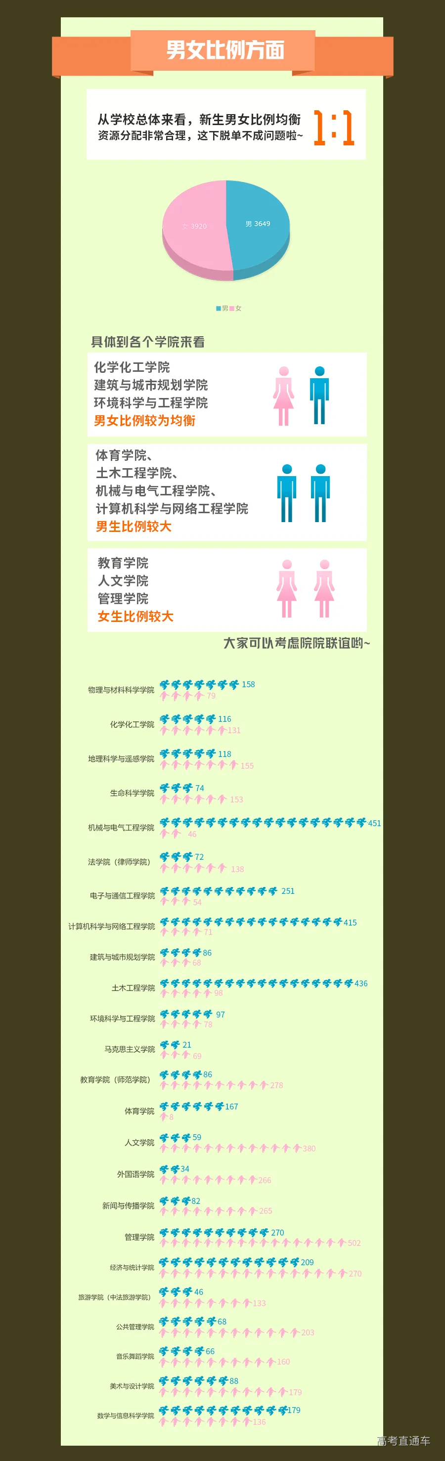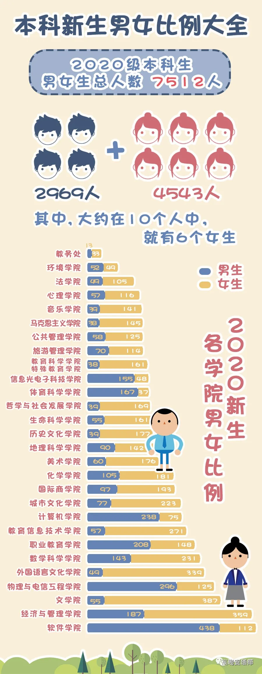 本科生男女比例为1:1.53,相比去年再度缩小差距,今年华师男生又更多了。