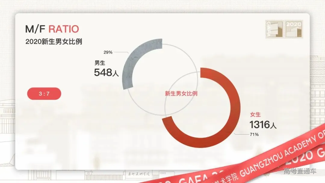 2020年广美迎来了 1864 名新生,男女比例约为 3 : 7。