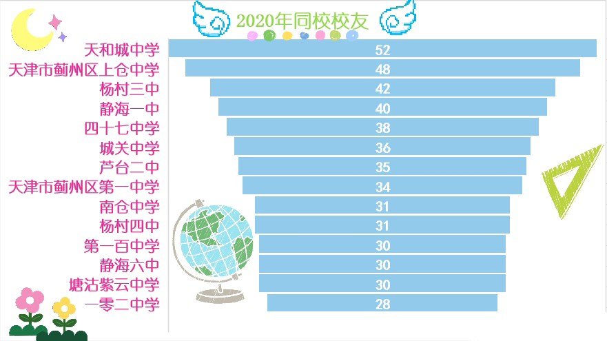 萌新星座情况 公平正直的天秤座萌新数量最多! 但是无论你是什么星座 欢迎来到天理星球 同校毕业的校友 在天理再次延续同窗情 很让小编羡慕呢 再次相遇即是缘 要彼此认识 彼此学习喔~ 民族团结大家庭 2020级少数民族萌新中 壮族,满族,回族强势挺进三甲 还有独具特色水族小伙伴和穿青族小伙伴喔 小萌新重名友谊榜 重名重姓的小萌新非常多 不止有4名帅气可爱的杨洋 2名巨星黎明 2名演员赵薇 还有3名孙超…… 以后的日子里 你们一定要相识相认 应该很有意思 生日相同最多的一天 10月22日过生日的小萌新们 愿你们平平安安成长! ②硕士研究生新生数据 研究生新生男女生比例 各学院研究生新生人数 电气电子工程学院以303人的 新生数量获得了第一名哦~ 研究生萌新年龄分布 ③博士生新生数据 博士生新生男女生比例 巾帼不让须眉 博士生新生中女博士更多一些哦~ 博士生新生年龄分布 最小的博士生新生今年只有24岁哦~