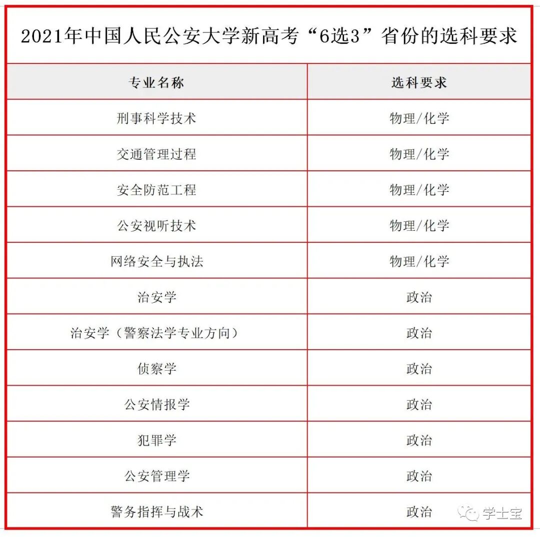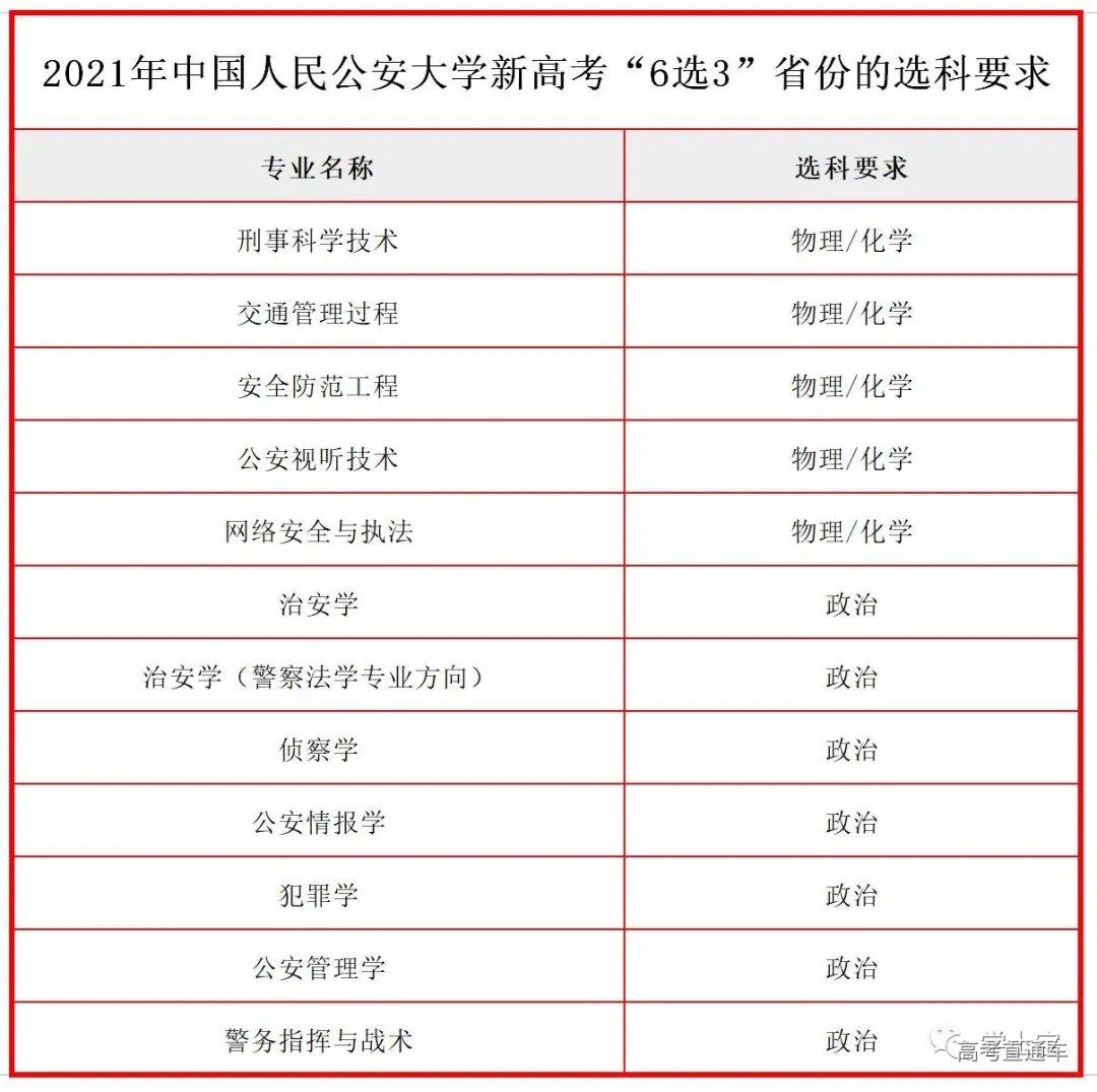 2、2021年中国人民公安大学新高考“6选3”省份的选科要求: