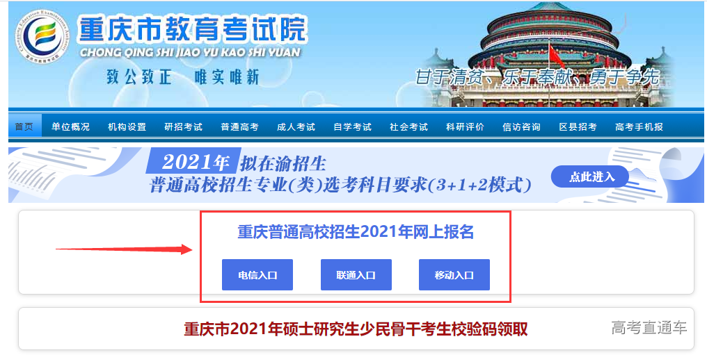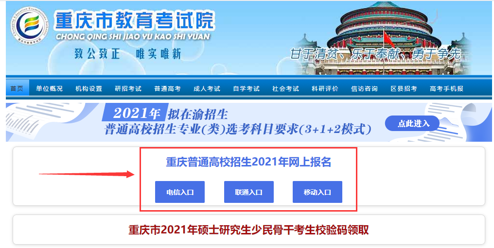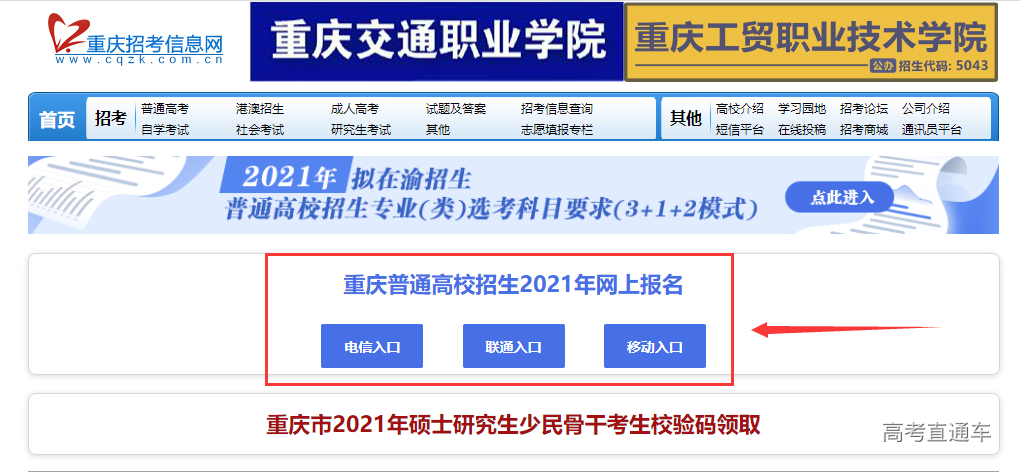 在校生在就读学校所在区县(自治县)招考机构设置的报名点进行报名,其他考生在户籍或工作单位所在区县设置的报名点进行报名。