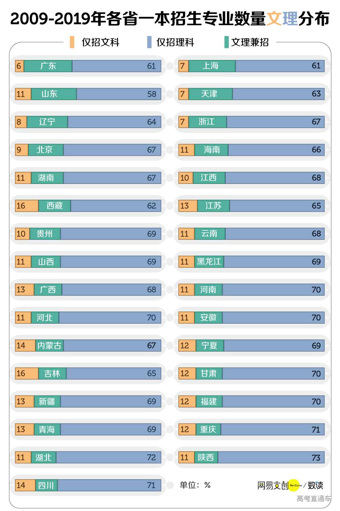 随着高考改革试点的铺开,虽然传统意义上的文理界限被打破,但“选文还是选理”好像开始逐渐变得更加复杂:上海、浙江作为首批试点,和北京、天津、山东、海南4省市同样采取“3+3”选考方案;将在 2021年落地新高考的福建、湖北等8个省,考生要先在物理或历史里二选一,某程度上来看,还是会有文理分科。那么选择文科还是理科,仍旧是决定学生选择大学专业的重要前提条件之一。