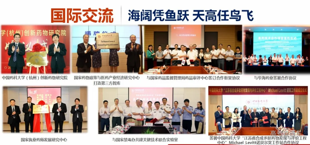A:中国药科大学与海外40多个国家和地区的院校及科研机构建立实质性学术合作关系,设立了中外合作办学项目、学位项目、学分互认项目、毕业实习项目、短期课程项目、文化交流项目等各类国际交流合作项目。同时,学校牵头建立了中美药学院校药学教育联盟,承办了“世界大学生药苑论坛”等国际级药学学术活动,邀请多位诺贝尔奖获得者来校进行学术交流,并合作建立诺贝尔工作站。学校还专门设立了“探索世界计划奖学金”,各学院也积极筹划为学生提供出国资助,这些举措都是培养学生国际化素养的有力保障。
