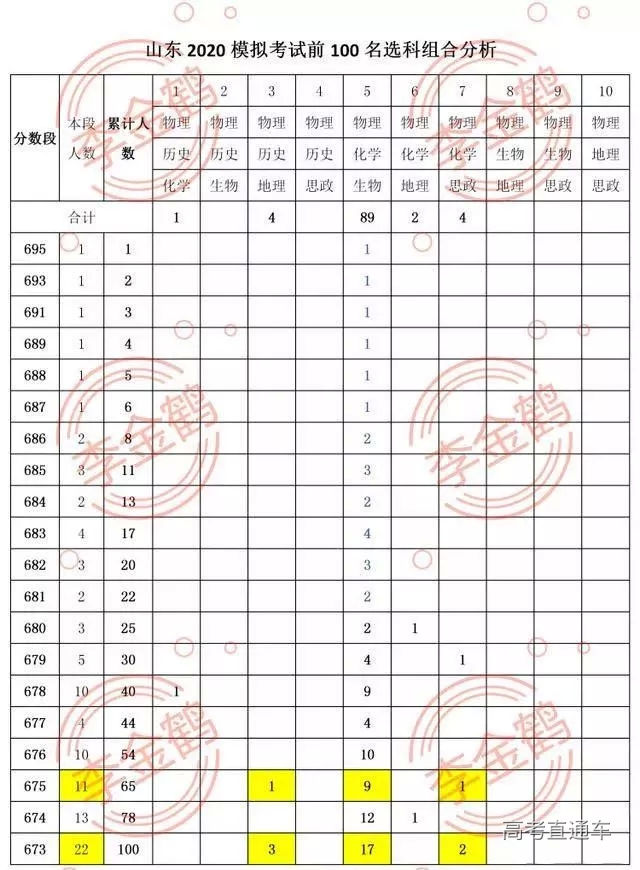 说明:675分及673分的组合人数其实有多种可能结果,表中是笔者主观觉得可能性最大的组合分布。