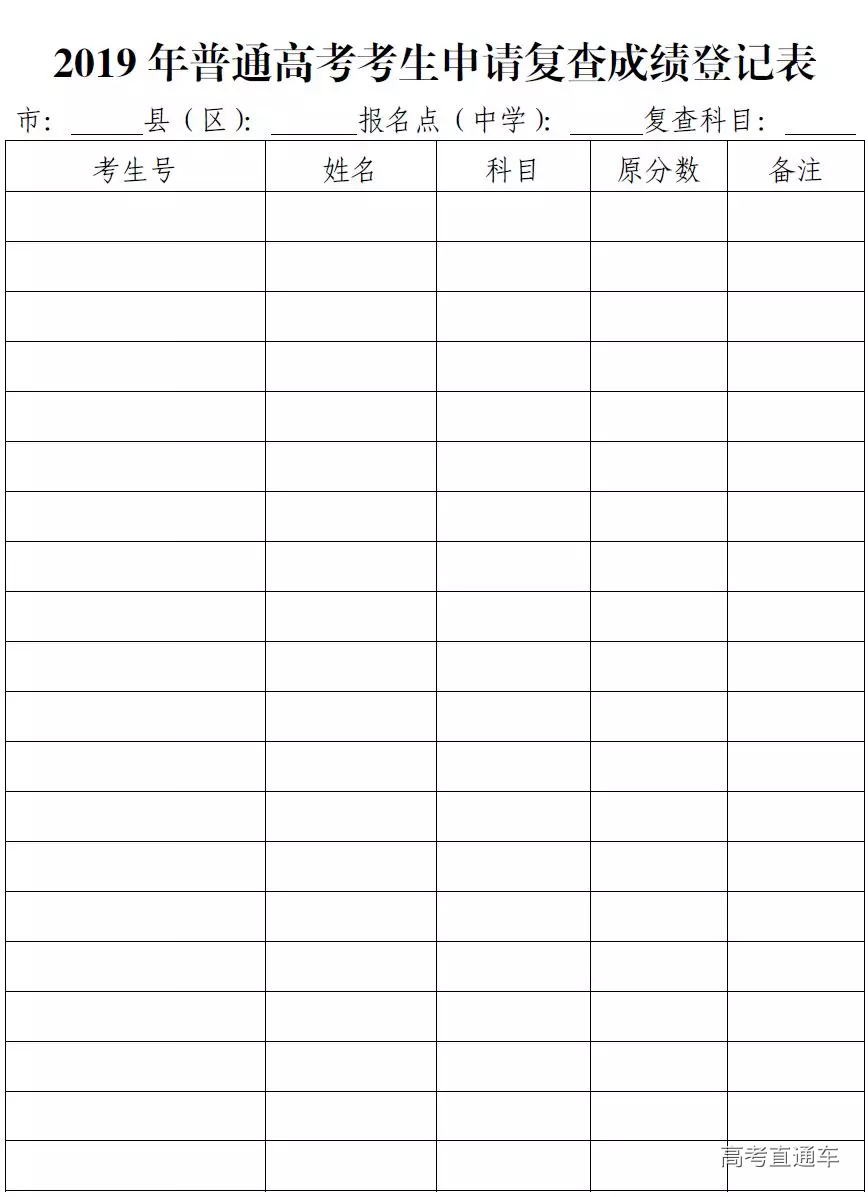 考生获得高考成绩后,如对本人某科成绩有疑问,可在6月25日12:00时前携带准考证到所在中学或当地县(市、区)招生办公室(考试中心)提出复查分数的书面申请,并按复查科目填写《考生申请复查普通高考各科目成绩登记表》。