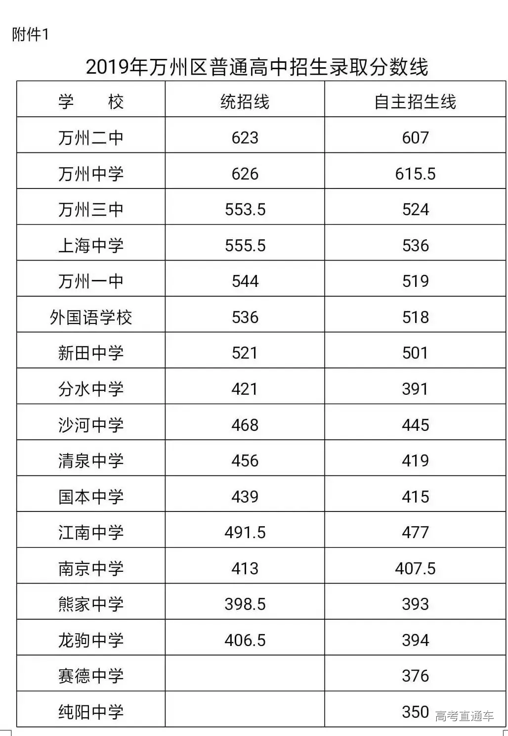开州区 ◆开中统招698.6分,调招670分; 忠县 ◆忠县中学585.5分,控制线495分 云阳县 ◆云阳中学:620.5分 ◆外国语学校:636.5分 ◆双江中学:541.5分 ◆凤鸣山中学:500.5分 ◆江口中学:459.5分 ◆实验中学:618.5分