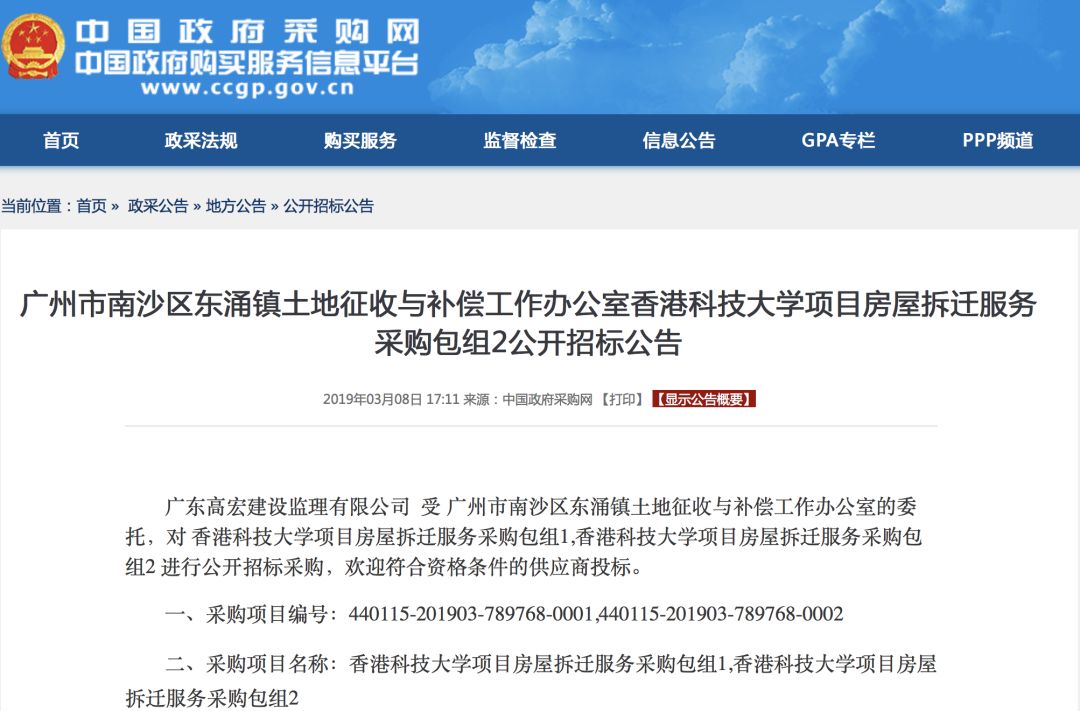 而2019年3月,相关的拆迁工程的公开招标采购已经在开展,力争今年年底动工。 1月29日,在省十三届人大二次会议广州团开放日上,省人大代表、广州市委常委、南沙区委书记蔡朝林透露,港科大广州校区力争今年年底动工,将采取边筹建边招生方式进行,今年9月开始招生,首批学生将赴香港就读。等到广州校区建好了,学生再转到南沙来学习。 2019年9月招生,首批赴香港就读 学术研究委员会主席、科大协理副校长吴宏伟表示,3月底已向广东省提交建校计划书,待上交国家教育部正式批准后,今年9月将率先录取100名研究生就读学位课程,而这100名研究生,在广州校区建好之前,将会赴香港就读! 根据办学协议,科大广州校区在招生上先招硕士、博士研究生,在6年内开设10个研究生学位课程,6年后再招本科生,总招生规模10000名左右。 分校的课程不会和港科大本部重复,更专注发展跨学科及主题式学习,主要在三个方向:人工智能、大数据、机械。 相关主题包括人工智能、数据科学、机器人自动化系统、高级材料制造、生物科学及生物医学工程、金融科技、企业数码化、环境与可持续发展、物联网及行政人员培训等。 香港科技大学校长史维 对于这个新建分校,科大校长史维特地强调,要确保广州校区学术水平和制度与香港同步,两校区同质管理,并将英语列作基本教学语言。 虽然科大(广州)资金是由广州市政府资助,但模式会与香港教资会资助本地大学的方式相若。广州分校教职员的薪酬、学生学费水平也会相当于香港校区的水平。 科大校长还重申学校将保持独立性,称学术自由是办学首要前提,承诺科大会维系学术自由;而未来科大及广州分校区师生将保持交流、参加不同计划,不会画地自限。 另外在师资方面,科大将有30多个教授到广州新校区工作,每学院将根据需要安排8-10名教授。同时也正开始招聘约500名教授人手。 除了招收的内地新生之外,港生也可以选择读广州分校的课程。 香港科技大学 办学质量与本部等同 据了解,港科大广州项目落在南沙庆盛高铁站枢纽区域,占地1.13平方公里,相当于港科大本部面积的两倍,广州市将给予建设、办学经费等各方面的保障。 项目分两期进行,力争今年底开工,第一期预计在2021年能够完工。未来两地办学有何不同?蔡朝林直言,广州分校办学质量将与香港科技大学本部等同! 蔡朝林分享了一个细节,他透露香港科技大学的标志建筑是一只小红鸟,按照惯例学校在其他地方建立合作机构,红鸟一定会小一点,但是广州校区红鸟和校本部一样大。“这也表示两校办学将一脉相承的高水平、高标准”。 对于广州校区和港科大本部最大的不同,蔡朝林认为在于研究配套措施、孵化及科技创新成果转化等方面。 他表示:“学生不是只在实验室里,研究成果可以孵化,可以成立公司,可以上市,我们把产业链条完全打通了。” 广州地区又将多一所高质量大学了! 你期待吗?