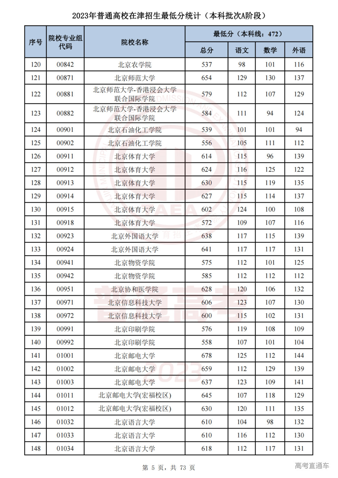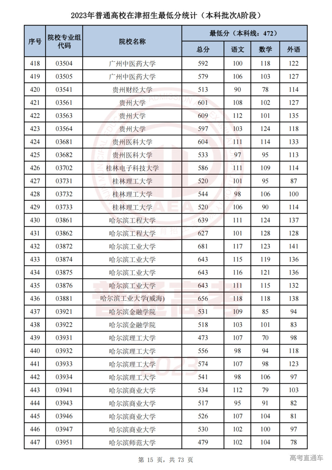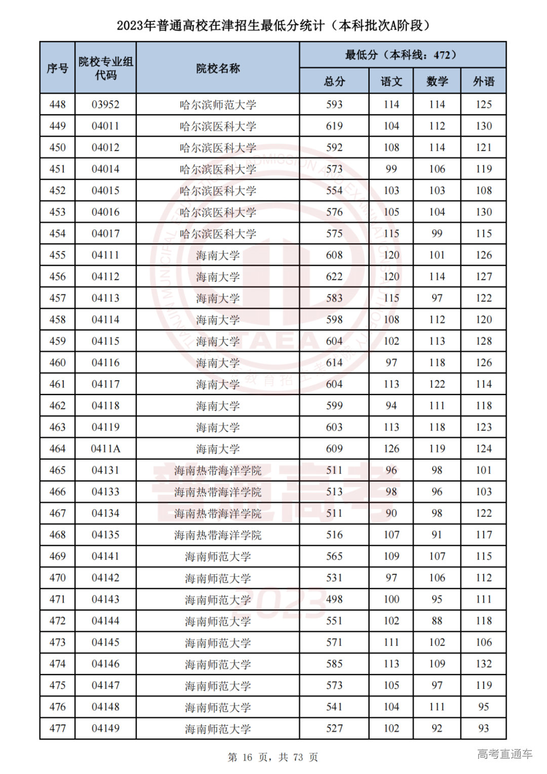 在市委、市政府的领导下,在市教育两委的具体指导下,我市2023年普通高校招生普通类本科批次A阶段录取工作现已基本结束。607所院校2164个专业组共计录取新生33400余人。7月20日下午14时起,考生可以通过登录招生院校网站、招考资讯网(www.zhaokao.net)、微信小程序“天津招考”、全国一体化在线政务服务平台、津心办APP、津云客户端、中国建设银行APP等多种途径查询普通类本科批次A阶段院校的录取结果。