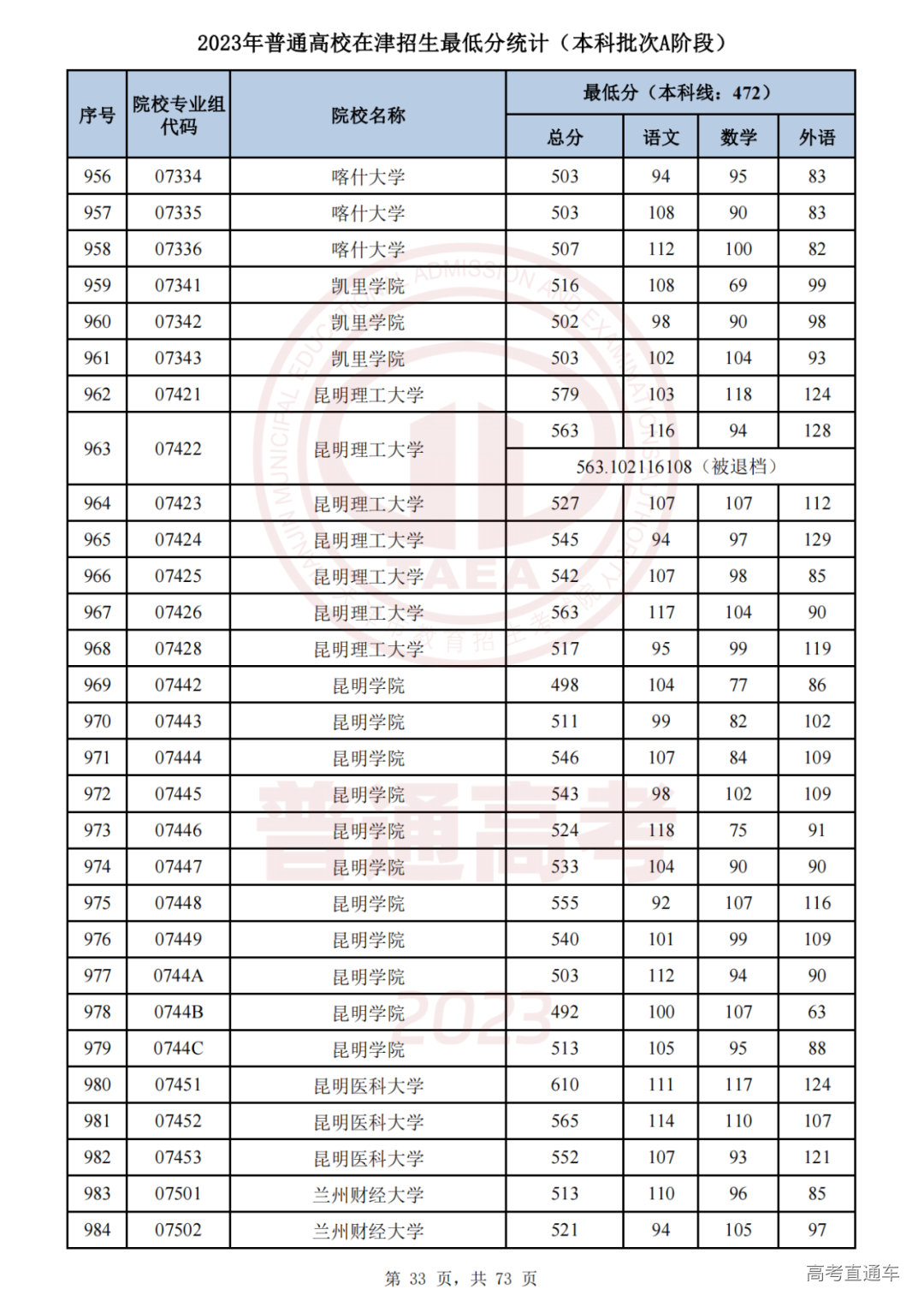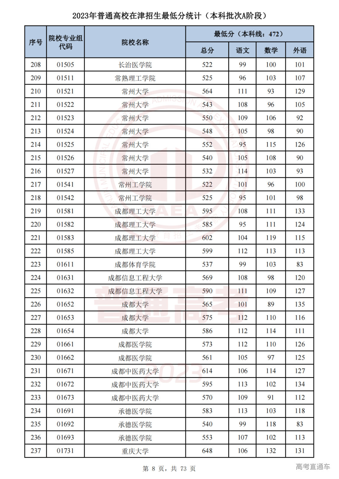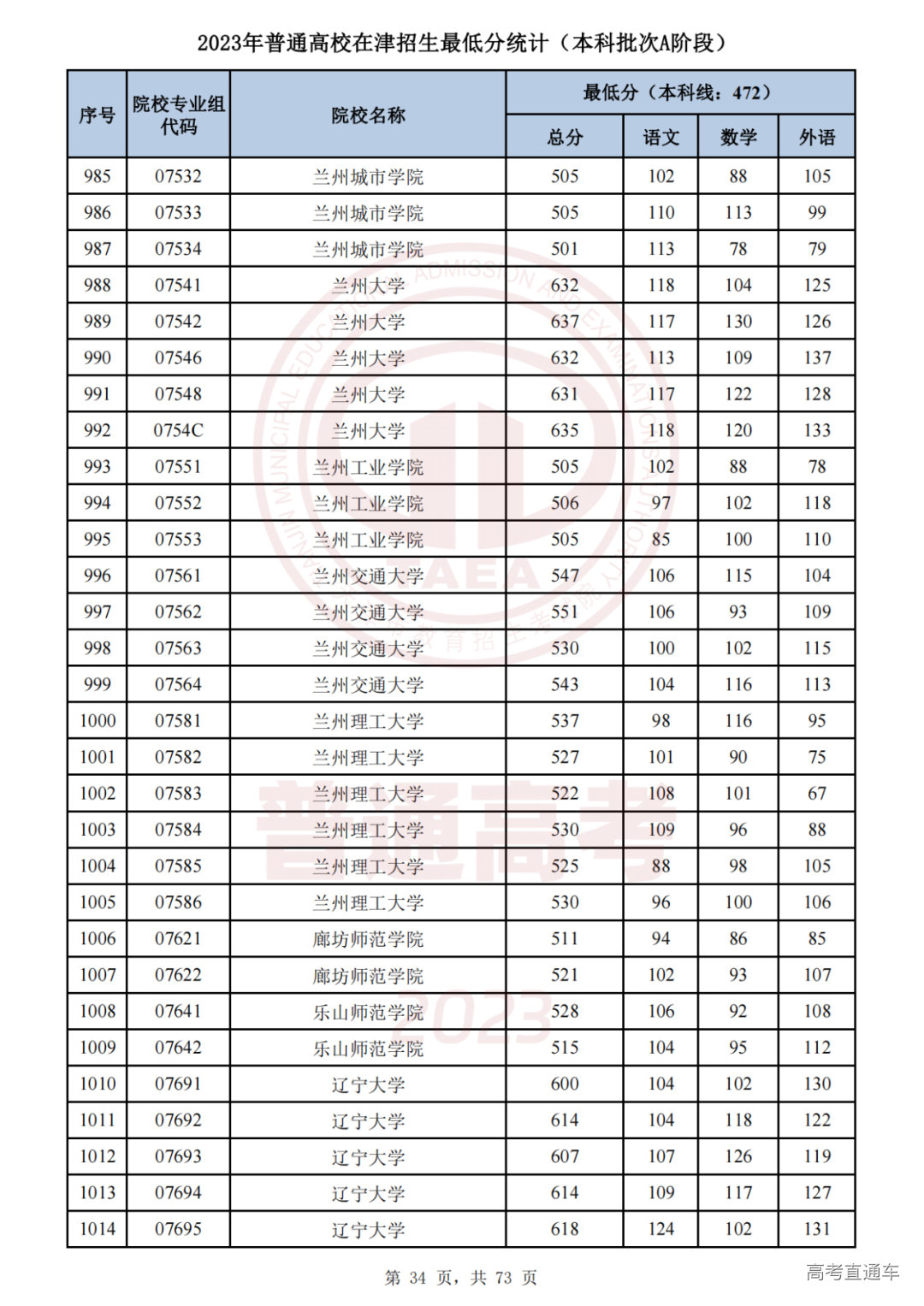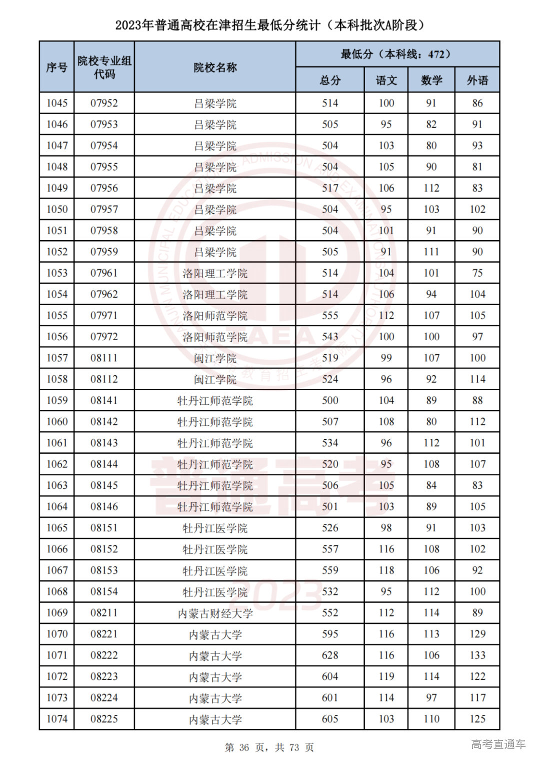 在市委、市政府的领导下,在市教育两委的具体指导下,我市2023年普通高校招生普通类本科批次A阶段录取工作现已基本结束。607所院校2164个专业组共计录取新生33400余人。7月20日下午14时起,考生可以通过登录招生院校网站、招考资讯网(www.zhaokao.net)、微信小程序“天津招考”、全国一体化在线政务服务平台、津心办APP、津云客户端、中国建设银行APP等多种途径查询普通类本科批次A阶段院校的录取结果。