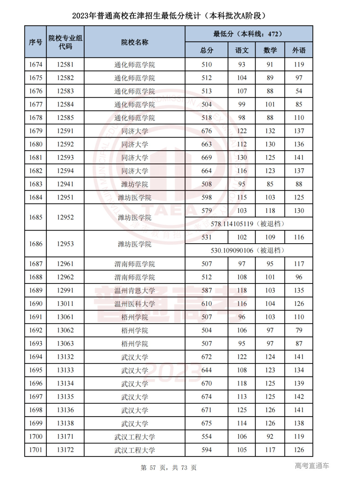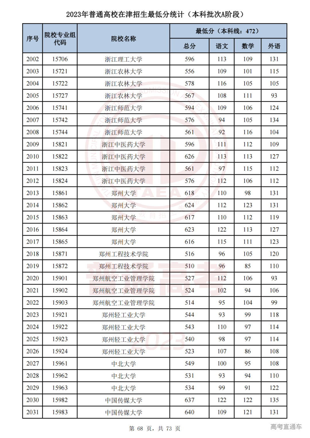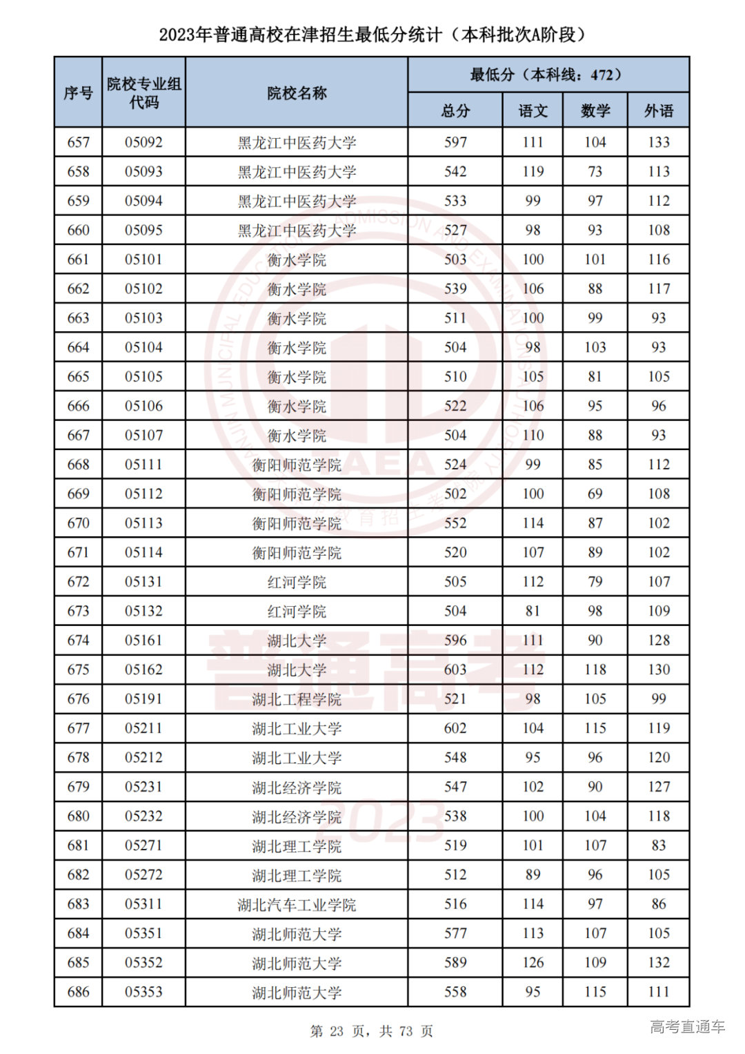 推荐阅读:天津2023年普通类本科批次B阶段各院校专业组录取最低分