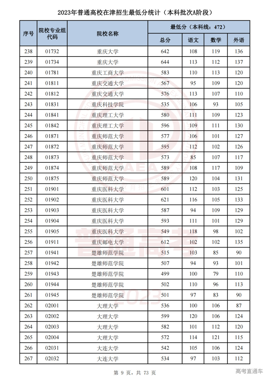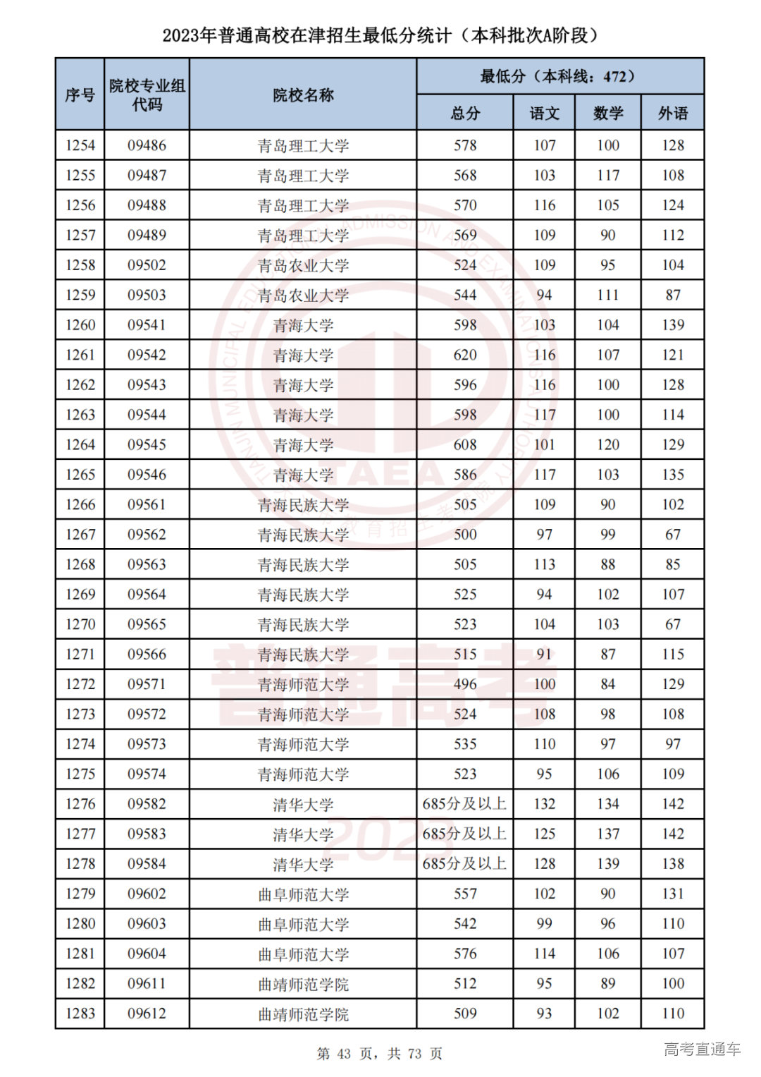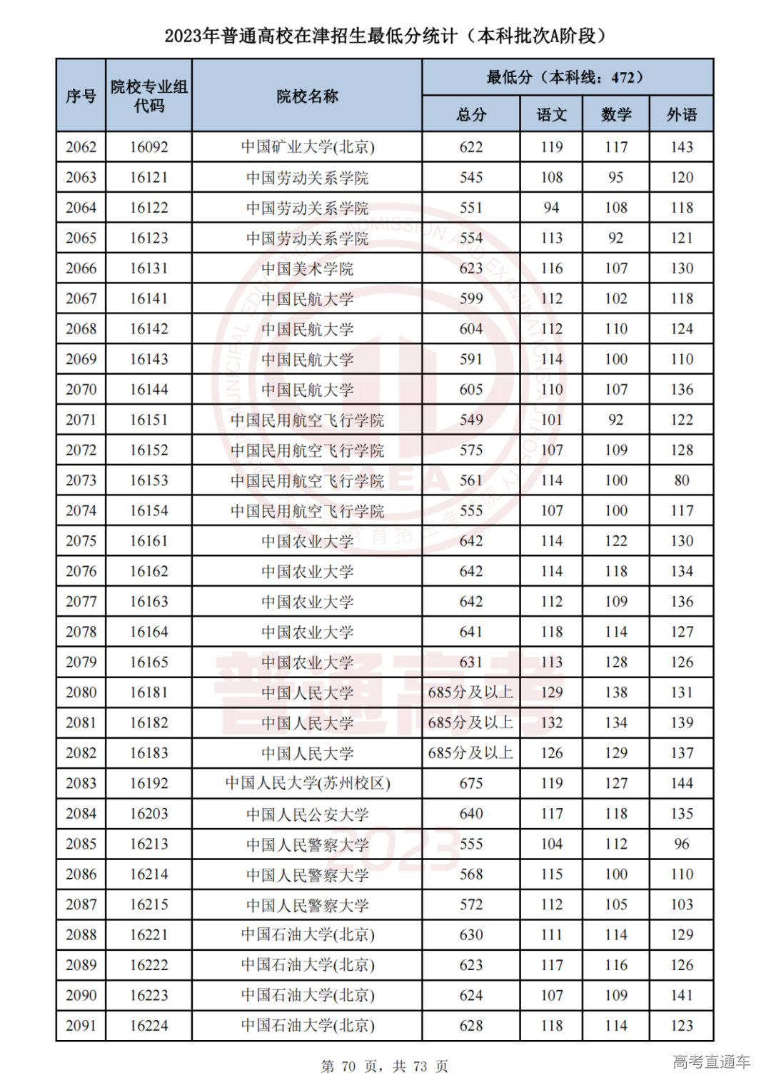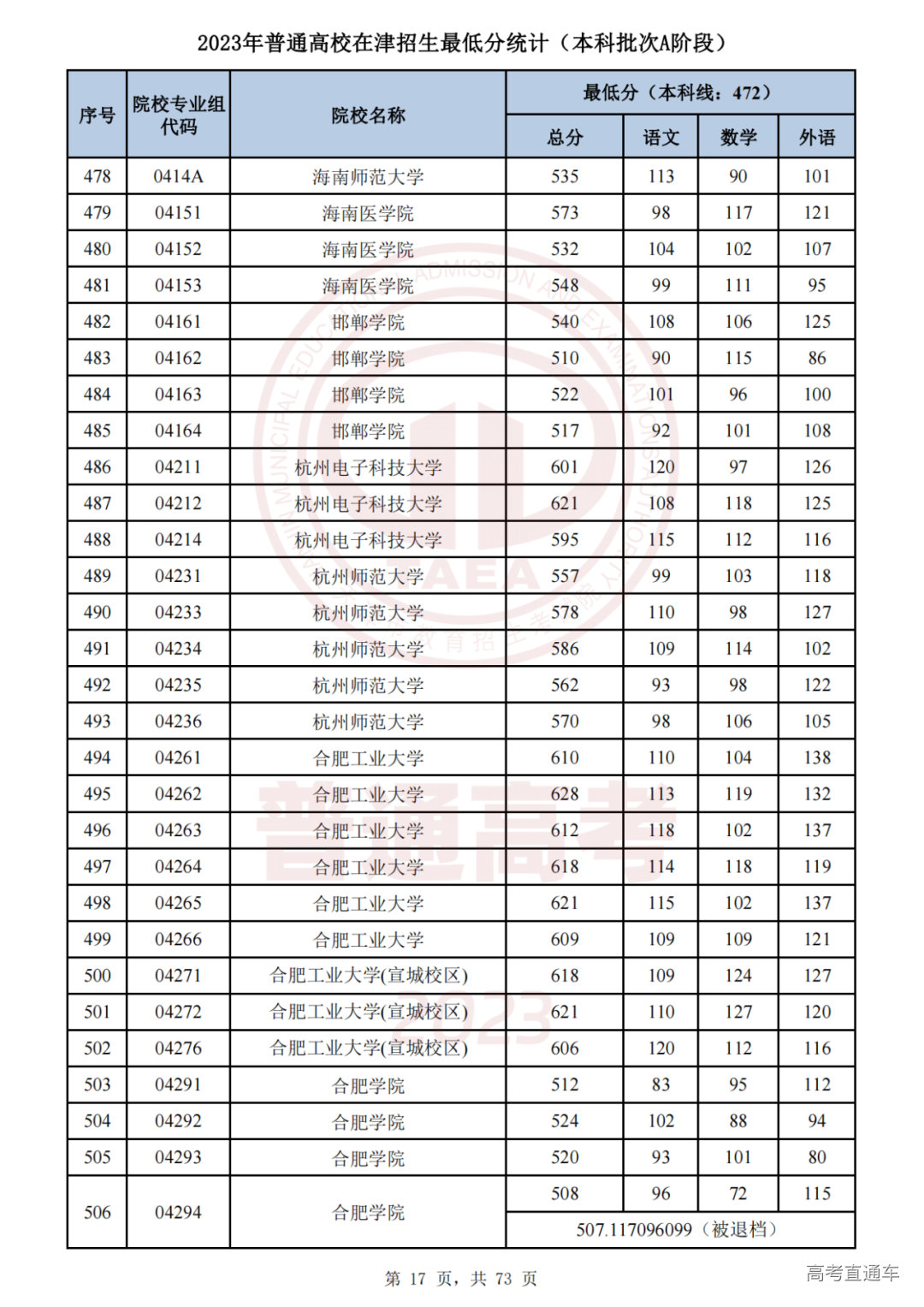 推荐阅读:天津2023年普通类本科批次B阶段各院校专业组录取最低分