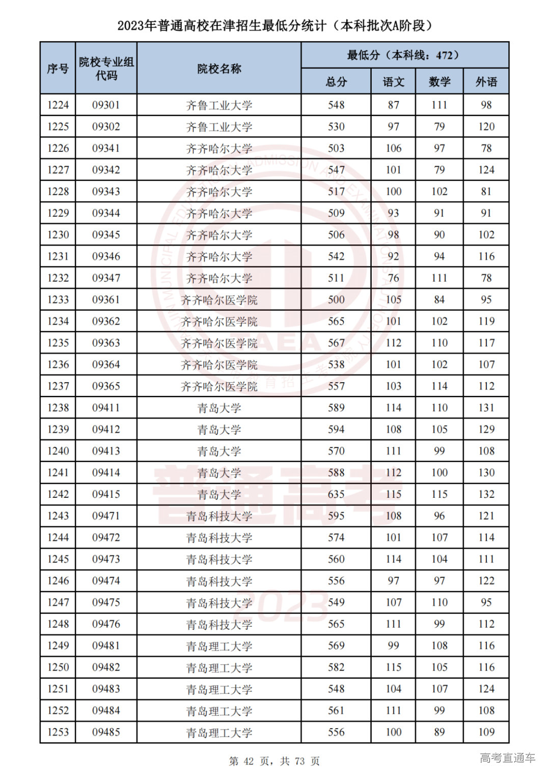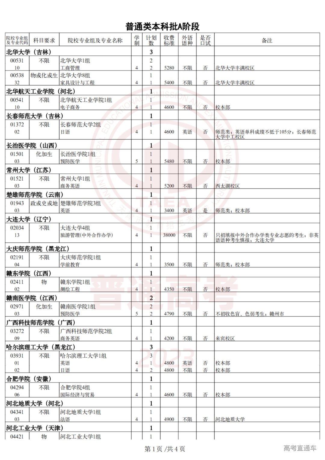 1.普通类本科批次A阶段各院校专业组平行志愿录取最低分