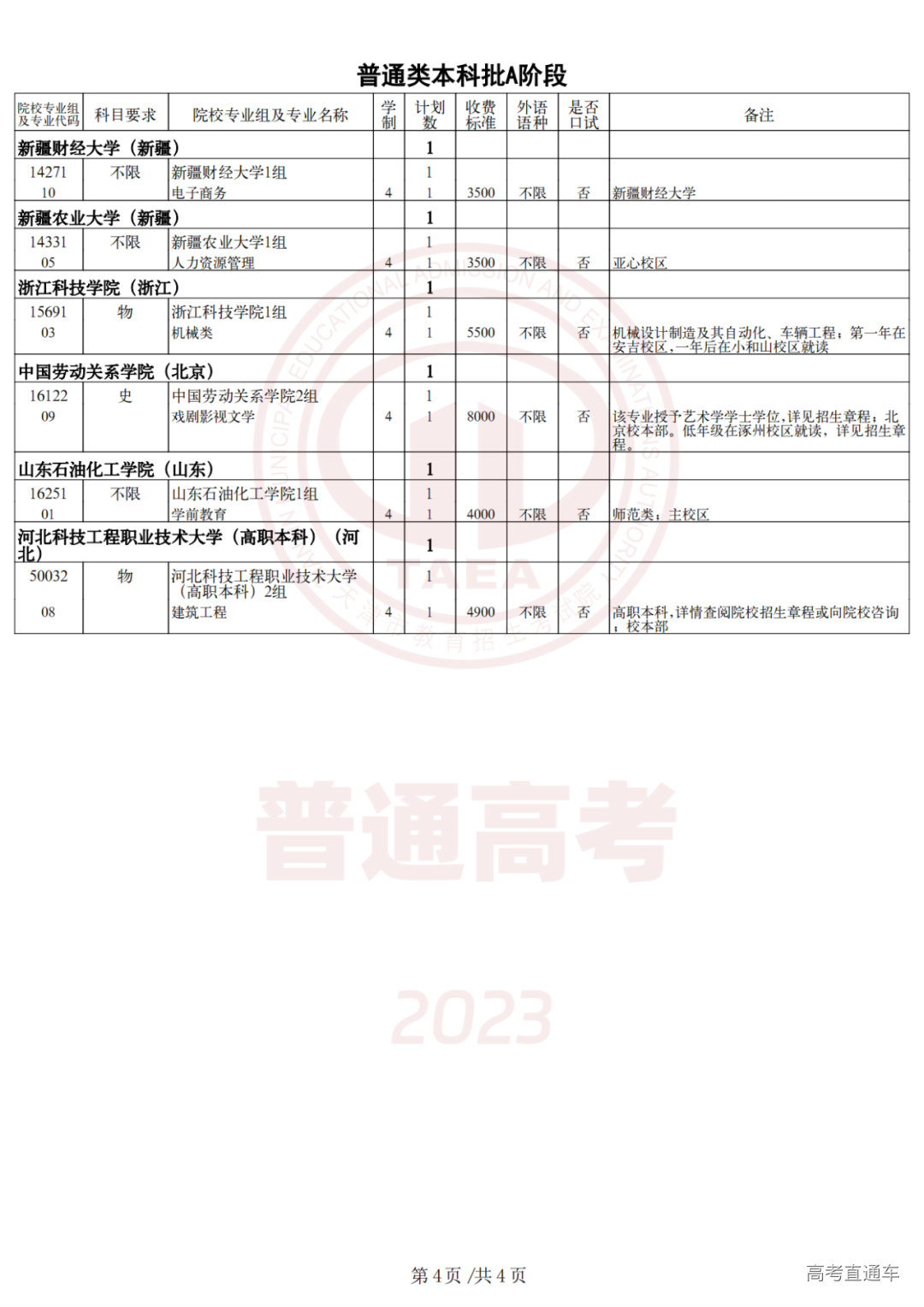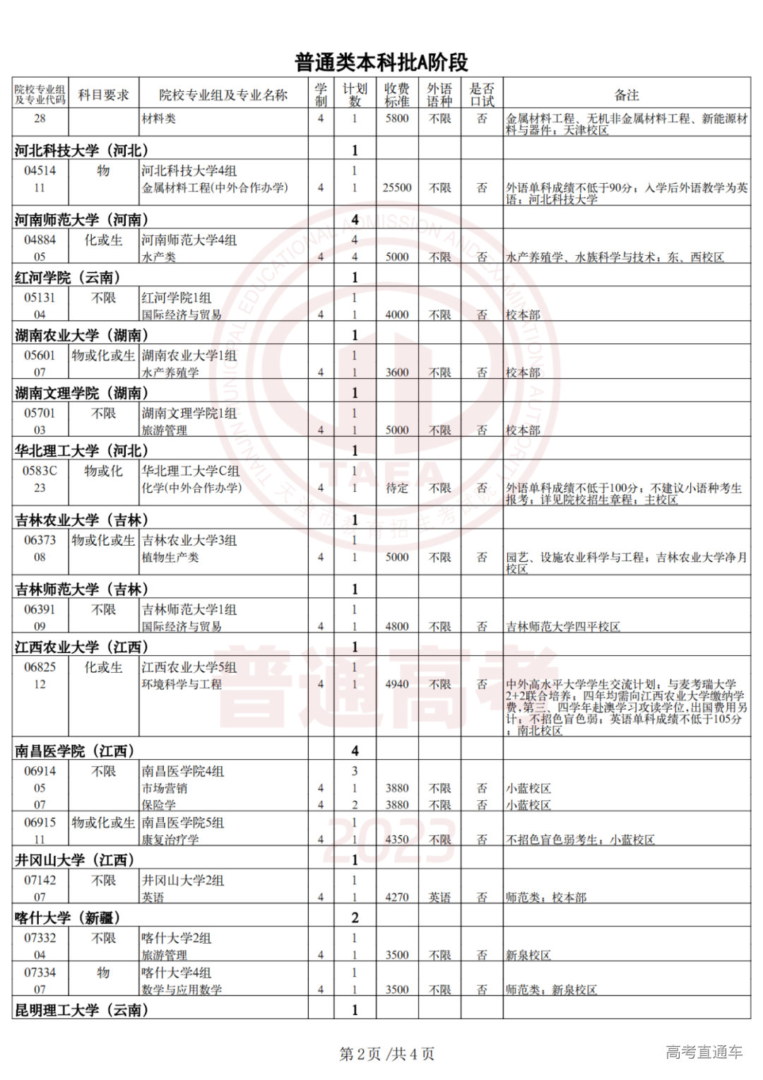 2.普通类本科批次A阶段征询志愿院校专业组余缺计划表