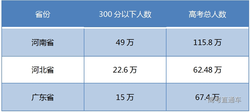 有人发我一张表,显示河南300分以下的考生多达49万,问我的看法。