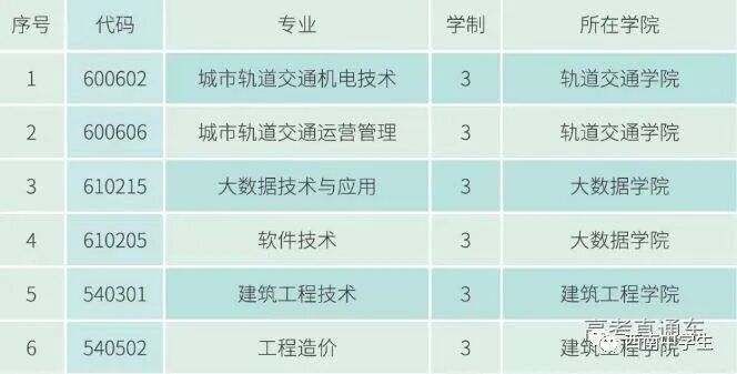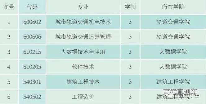 该校首批设置的城市轨道交通机电技术、城市轨道交通运营管理、大数据技术与应用、软件技术、建筑工程技术、工程造价等6个专业2019年起正式招生。