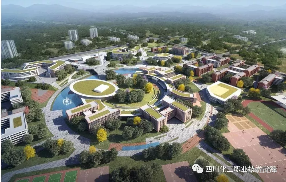 四川化工职业技术学院新校区位于泸州市第二医教园区,占地约900亩,总建筑面积约25万平方米。泸州两江新城长江生态湿地新城北部核心区,距泸州市中心约9公里,距纳溪区约4公里。