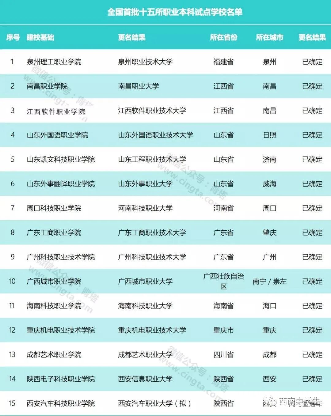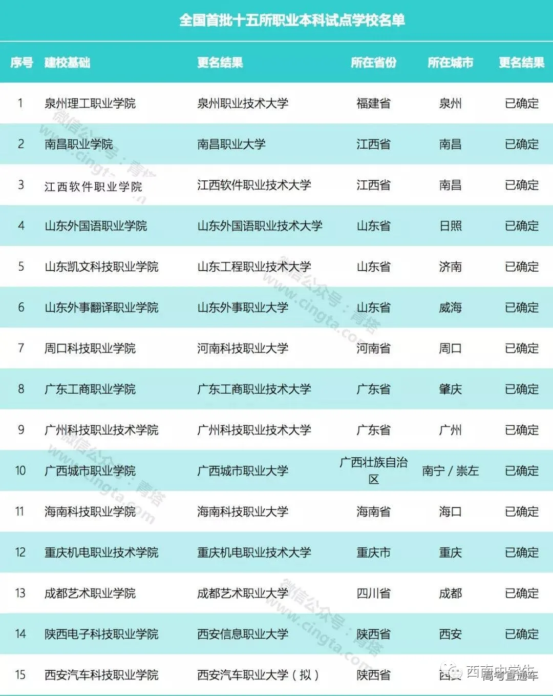 2019年,教育部正式批准了首批本科职业教育试点高校更名结果,它们由“职业学院”正式更名为“职业大学”,同时升格为本科院校。名单中有2所高校来自川渝。