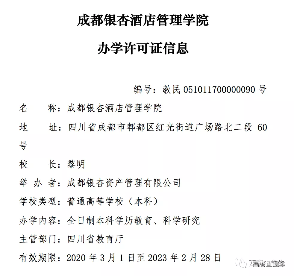 2020年4月3日,教育部官网正式发文,同意6所高校转设为本科层次普通高等学校。文中提到,成都信息工程大学银杏酒店管理学院转设为成都银杏酒店管理学院,同时撤销成都信息工程大学银杏酒店管理学院的建制。