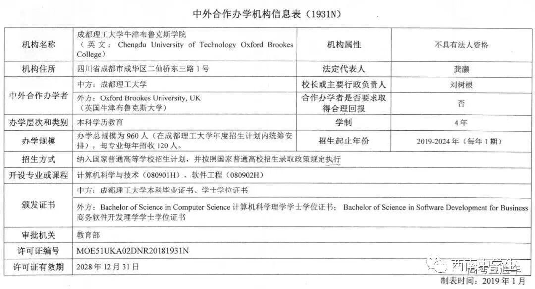 2019年1月29日,教育部官网发布了《教育部关于同意设立成都理工大学牛津布鲁克斯学院的函》,同意设立成都理工大学牛津布鲁克斯学院,学院隶属于成都理工大学。