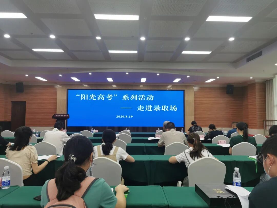 今(19)日,重庆市教育考试院组织的“阳光高考”参观录取场活动举行。人大代表、政协委员代表和考生代表40余人参观了重庆高考录取场系统保障组、计划组、投档组、录检组和秘书组,实地见证录取实况和录取全过程。
