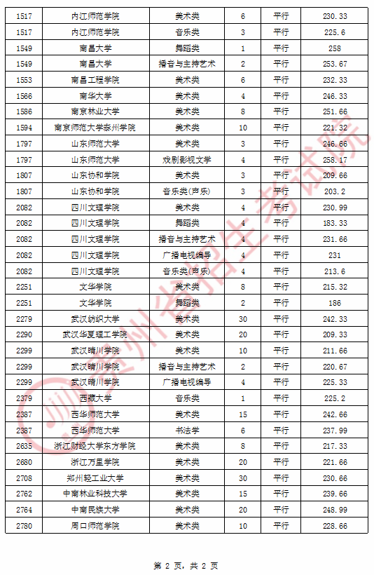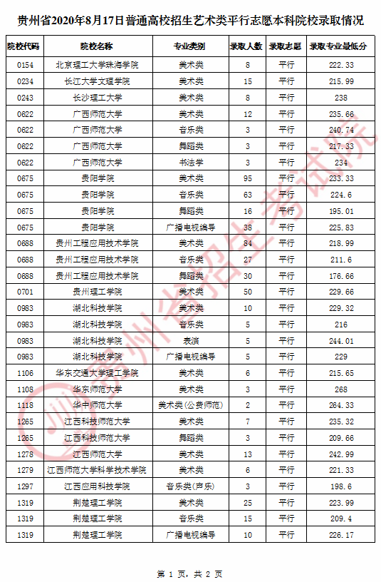 艺术类平行志愿本科院校录取情况