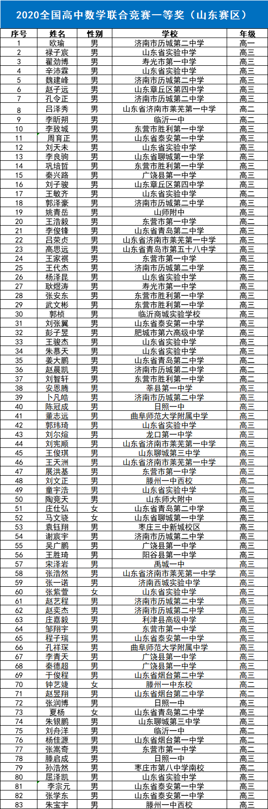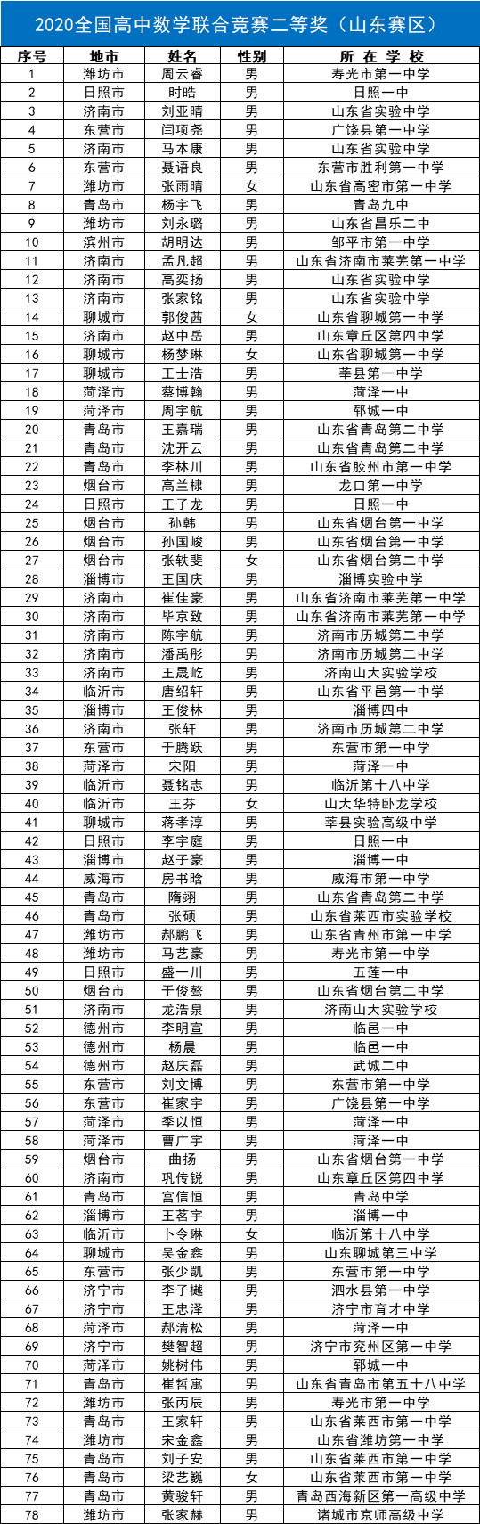 截至发文前,已有山东、辽宁、陕西、贵州、北京、天津、安徽、山西、河北、浙江、江西、福建、广东、重庆、四川、上海、湖北、湖南、黑龙江、山西、广西、新疆等22个省市公布了2020年全国数学联赛省队省一获奖名单。