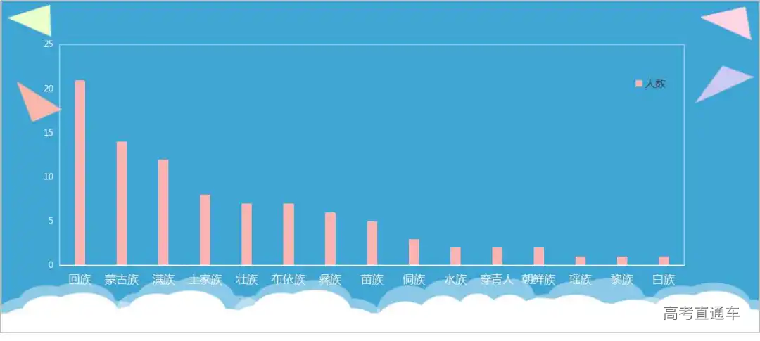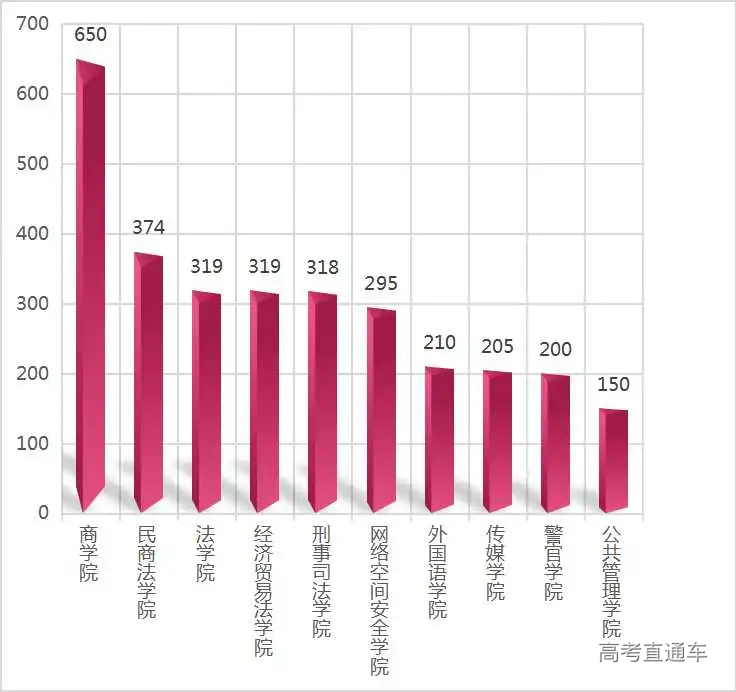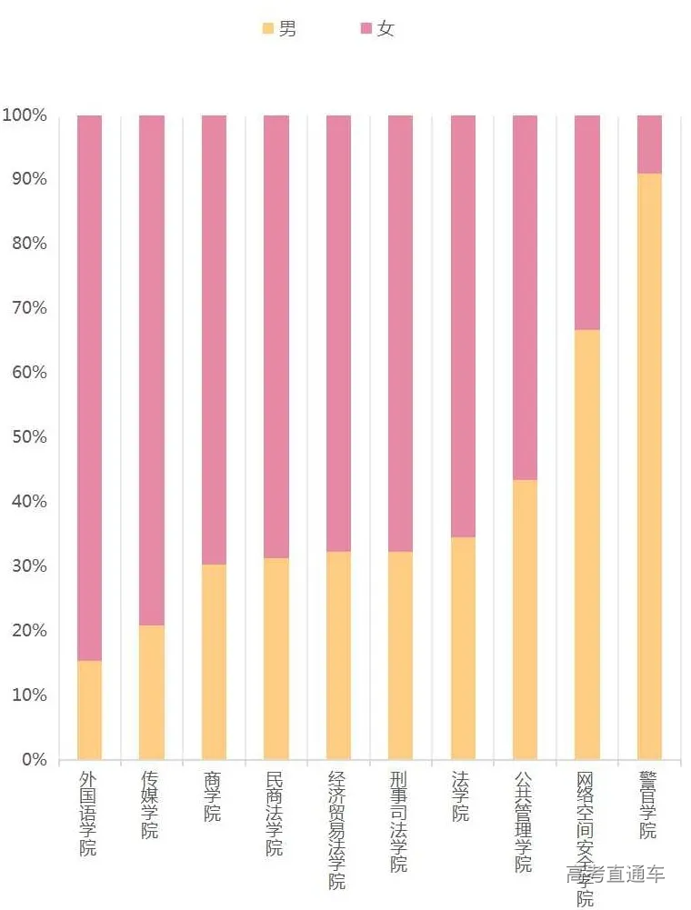 2020级录取新生数量最多的三所高中:菏泽一中(25人)、庆云一中(24人)、临沂一中(24人)。 2020年,山东政法学院各学院录取人数最多的学院前两名是:商学院和民商法学院。 2020级新生们的年龄跨度也不小,最大的新生出生于1998年,22岁;最小的新生出生于2003年,17岁。 2020级新生中,男生人数为1135人,女生人数为1905人,男女总体比约为4:6。 各学院新生男女比例 其中,男女比例最大的分别是外国语学院和警官学院,外国语学院男女比例为1:7,警官学院男女比例为9:1。 2020级新生的民族构成很丰富,有15个民族。少数民族新生人数最多的是回族,有21人,蒙古族人数有14人,满族人数有12人。 2020年,来自“老王家”的孩子们最多,成为我校新生“第一家族”,“老张家”紧随其后。姓氏榜单前三名依旧是“王”、“张”、“李”。 2020年,新生星座排行榜前三名的是:金牛座(452人)、白羊座(313人)、巨蟹座(276人)、天蝎座(276人)。