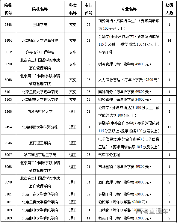一、凡高考成绩在我省本科二批院校录取控制分数线(文史类356分,理工类301分,含照顾政策分)以上未被录取的考生,文史类、理工类考生均可填报5个院校平行志愿。填报志愿时请认真查看院校单科成绩要求及学费标准。