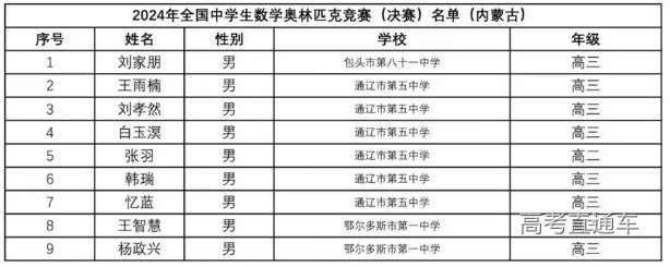 2024年第40届全国中学生数学联赛省队名单(内蒙古)