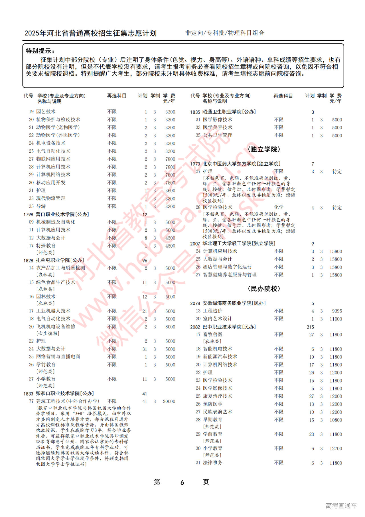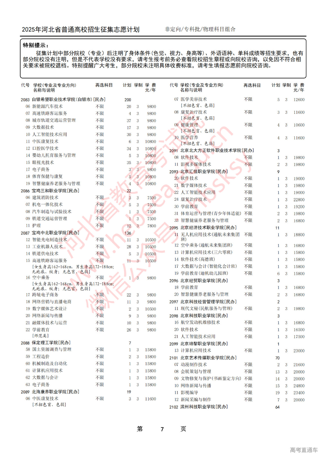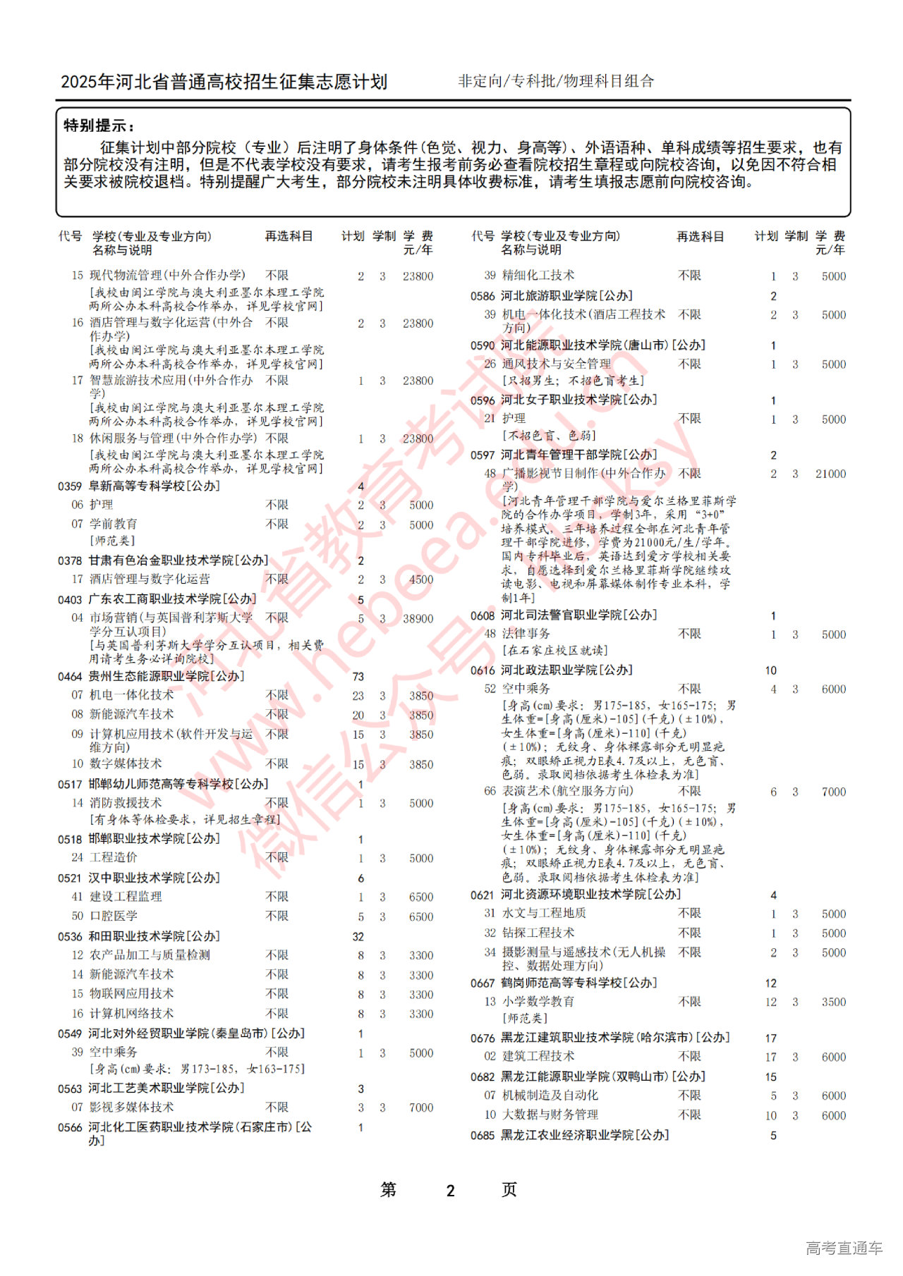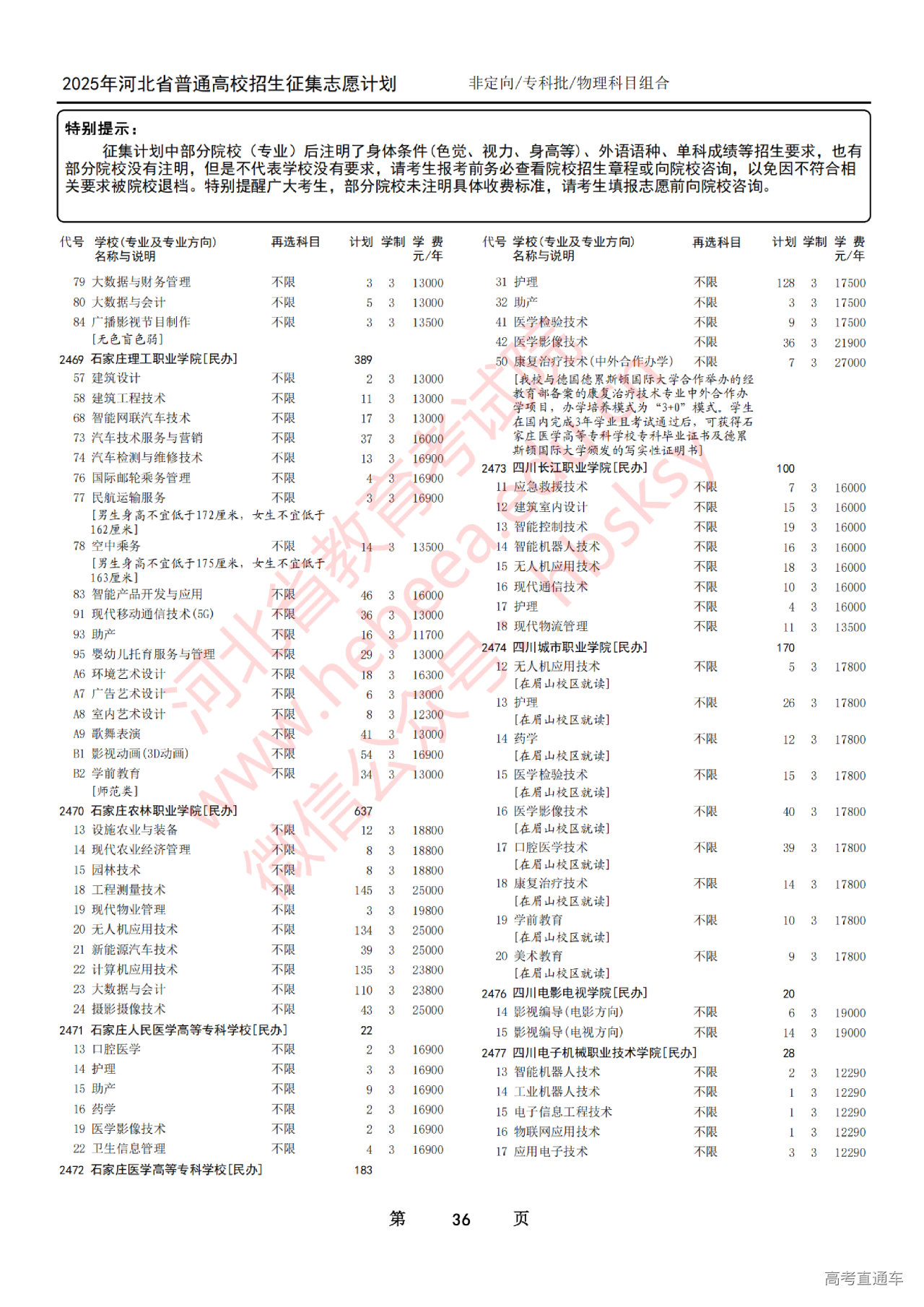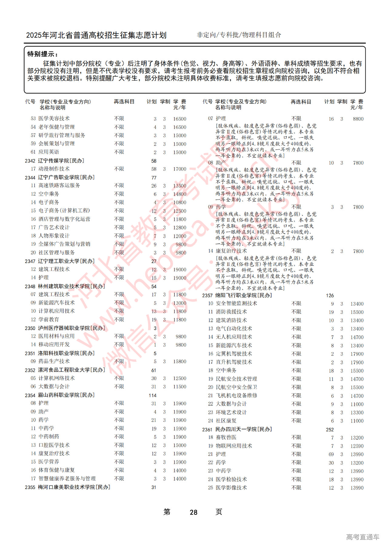 六、考生身体条件以高考体检表记载为准。部分院校专业对考生的身高、体重、视力、色觉、单科成绩等有要求,部分院校学费较高,请考生认真查阅拟填报院校招生章程或咨询院校。