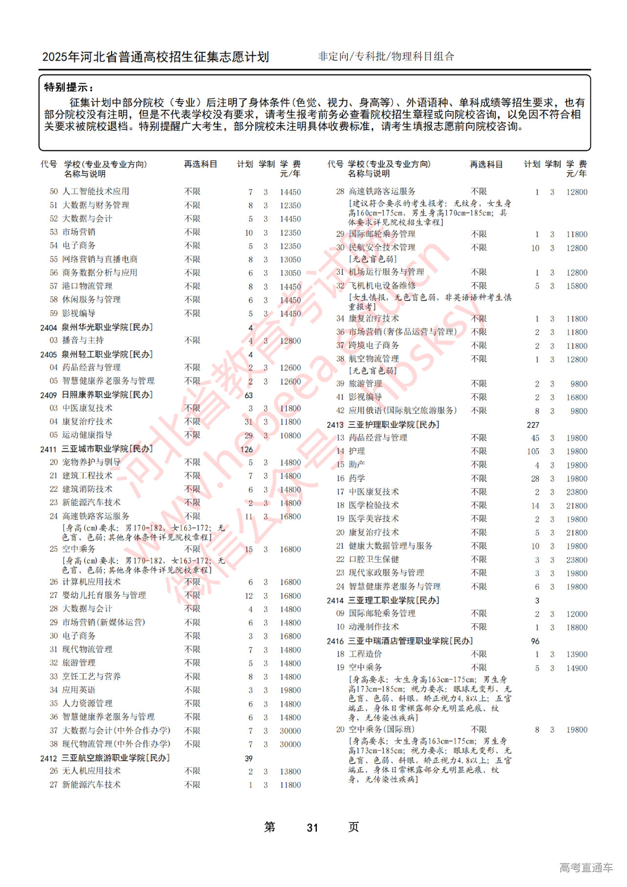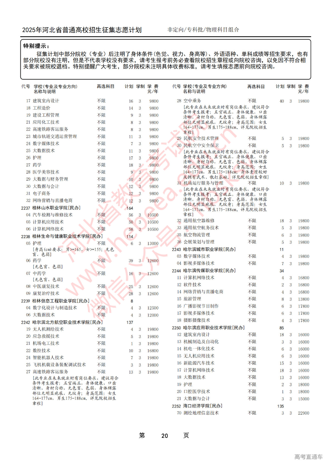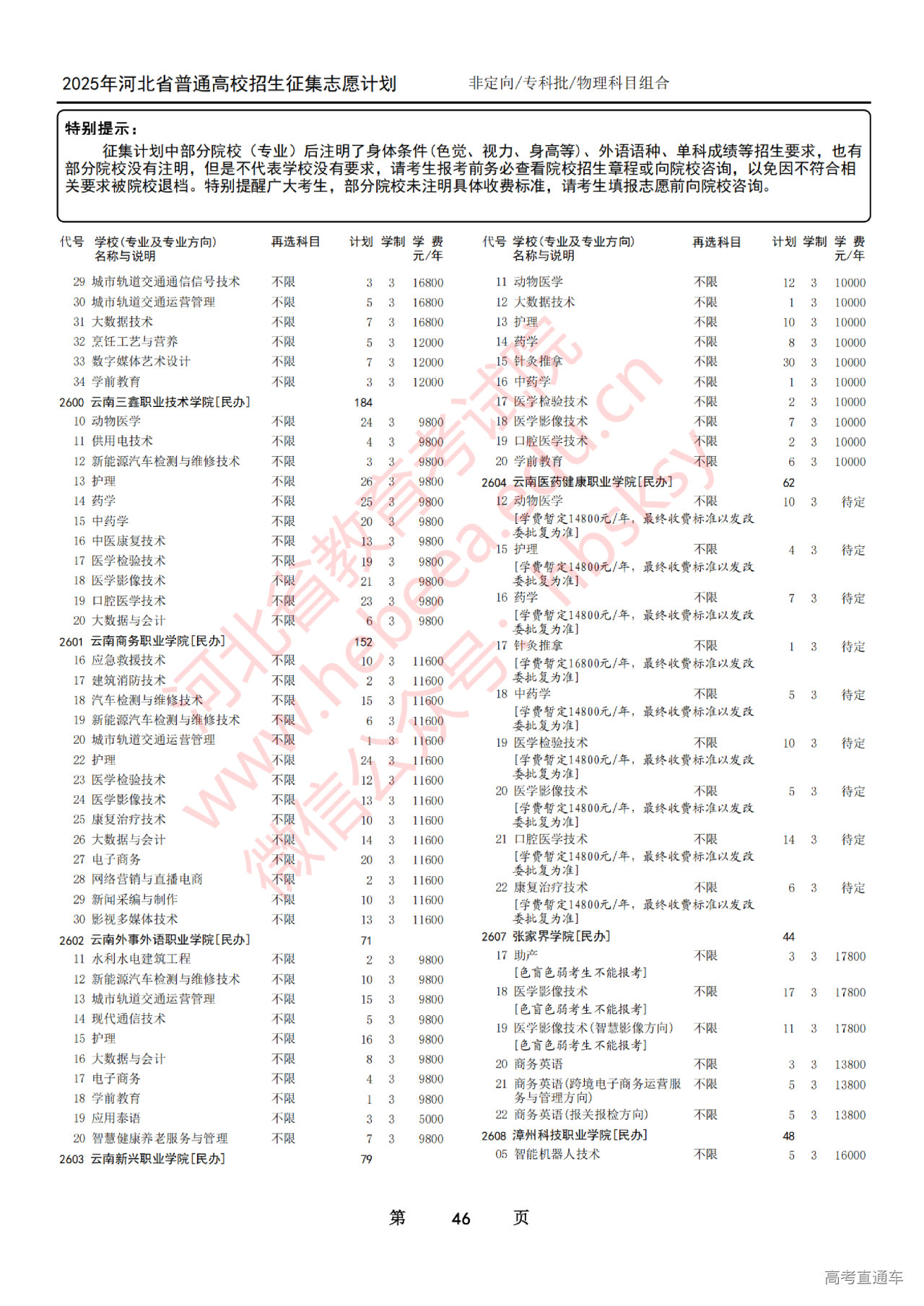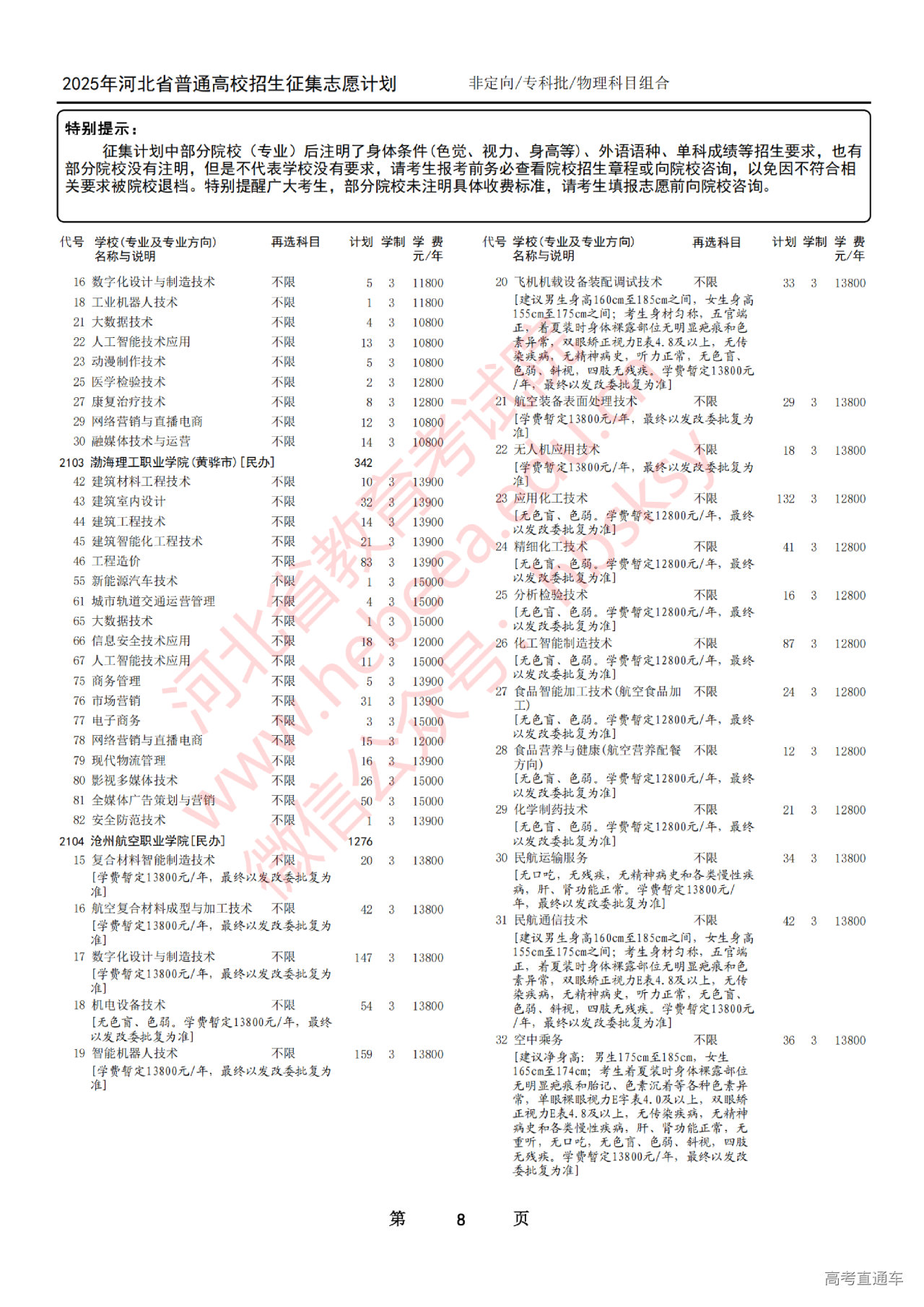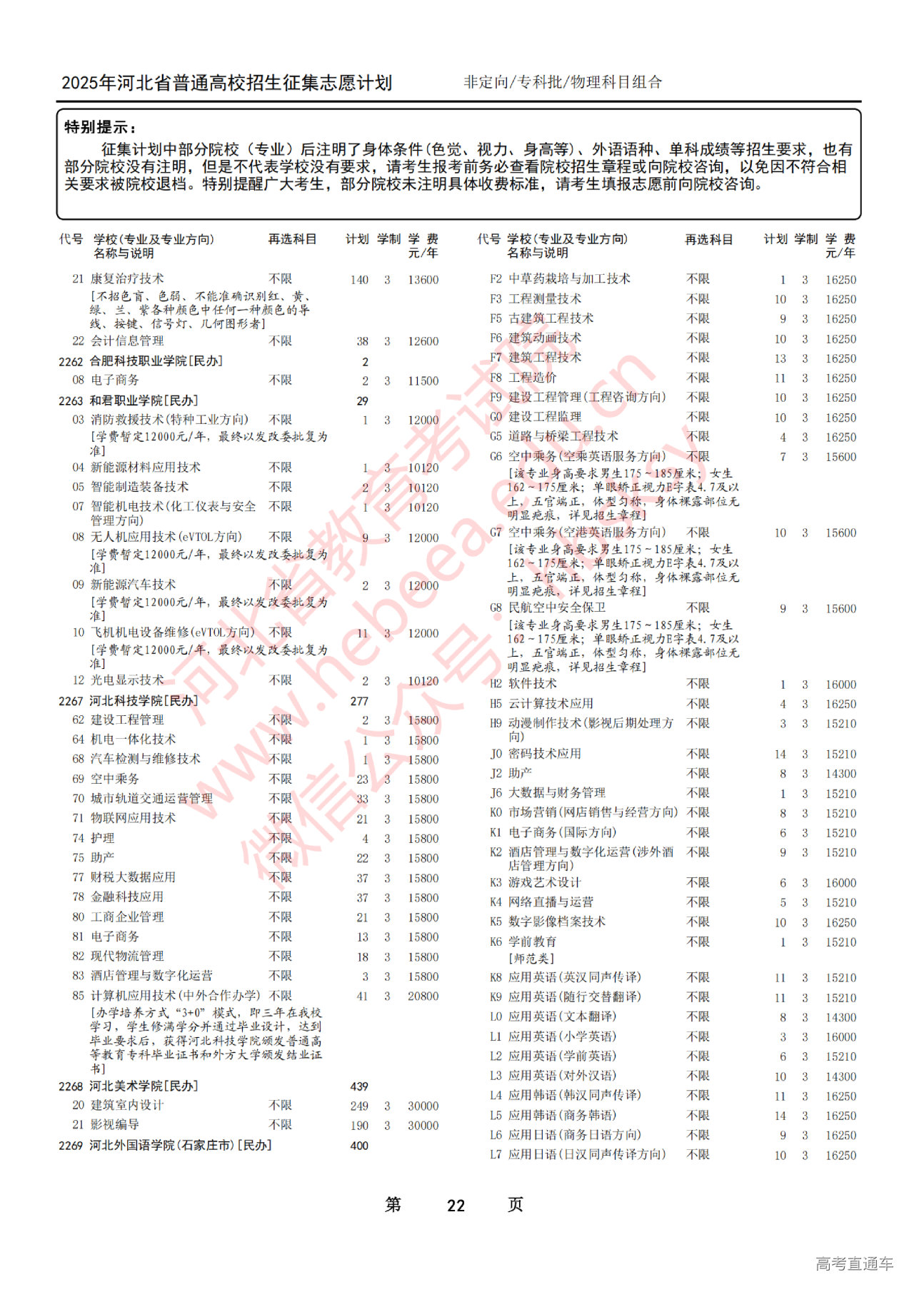 六、考生身体条件以高考体检表记载为准。部分院校专业对考生的身高、体重、视力、色觉、单科成绩等有要求,部分院校学费较高,请考生认真查阅拟填报院校招生章程或咨询院校。