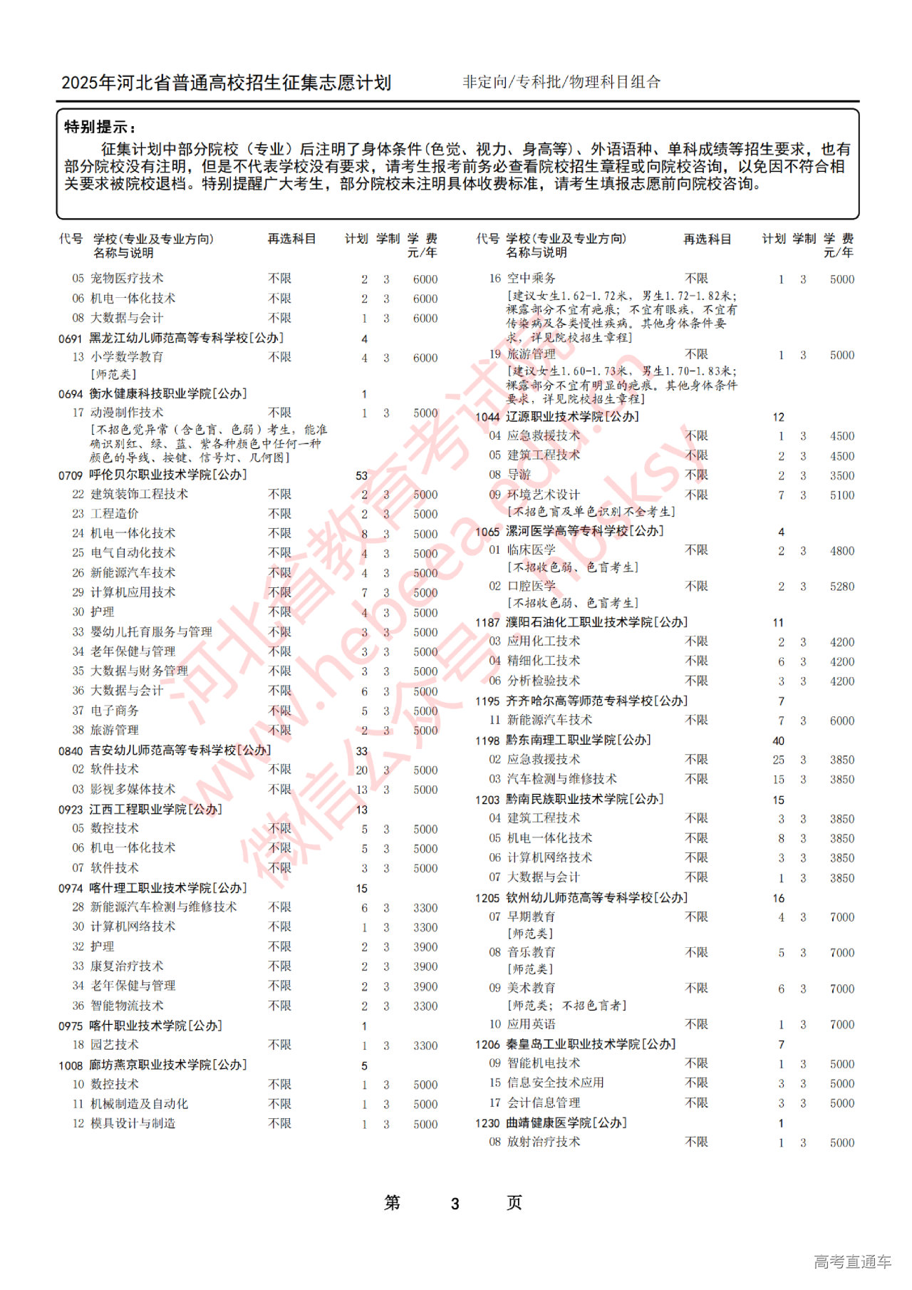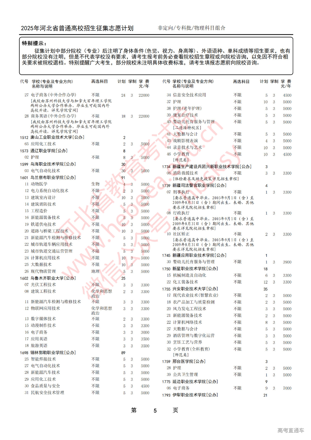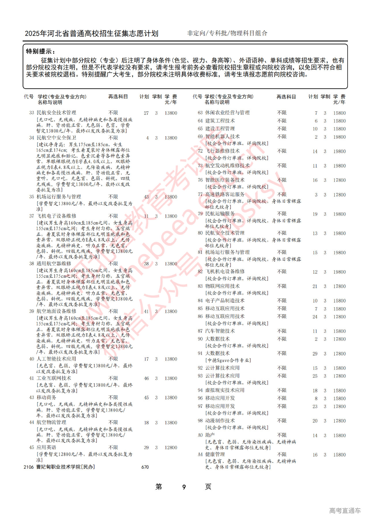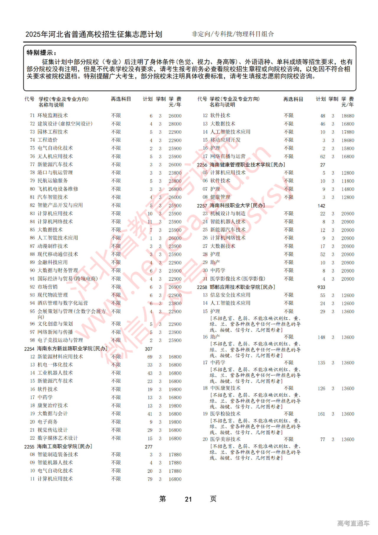 六、考生身体条件以高考体检表记载为准。部分院校专业对考生的身高、体重、视力、色觉、单科成绩等有要求,部分院校学费较高,请考生认真查阅拟填报院校招生章程或咨询院校。
