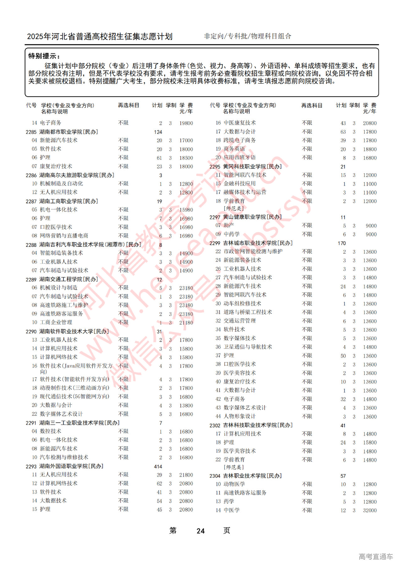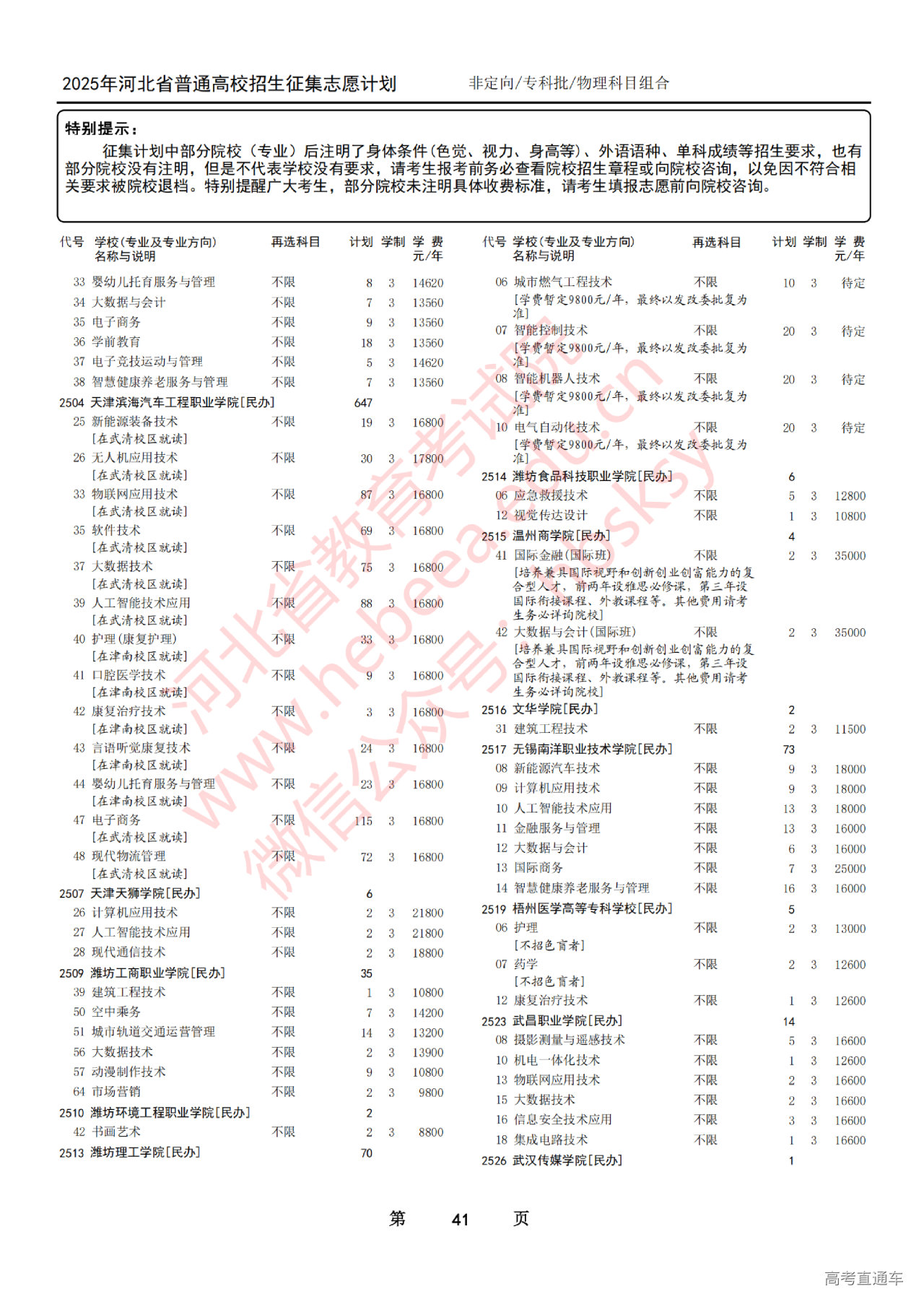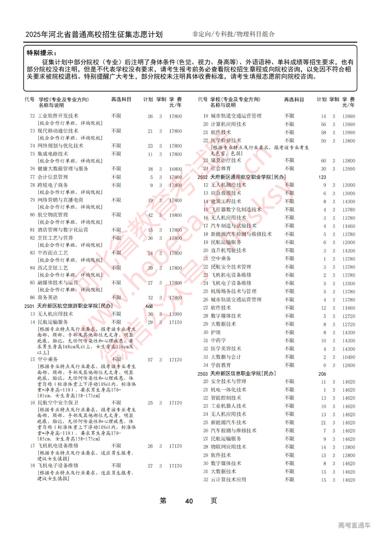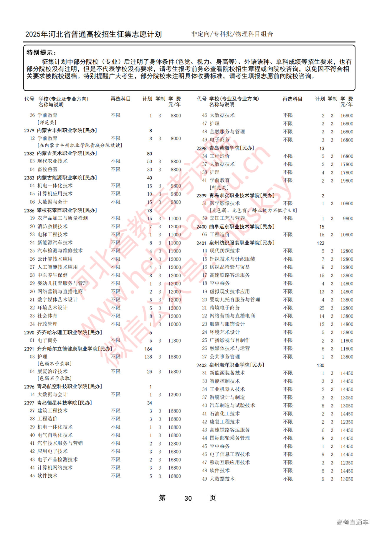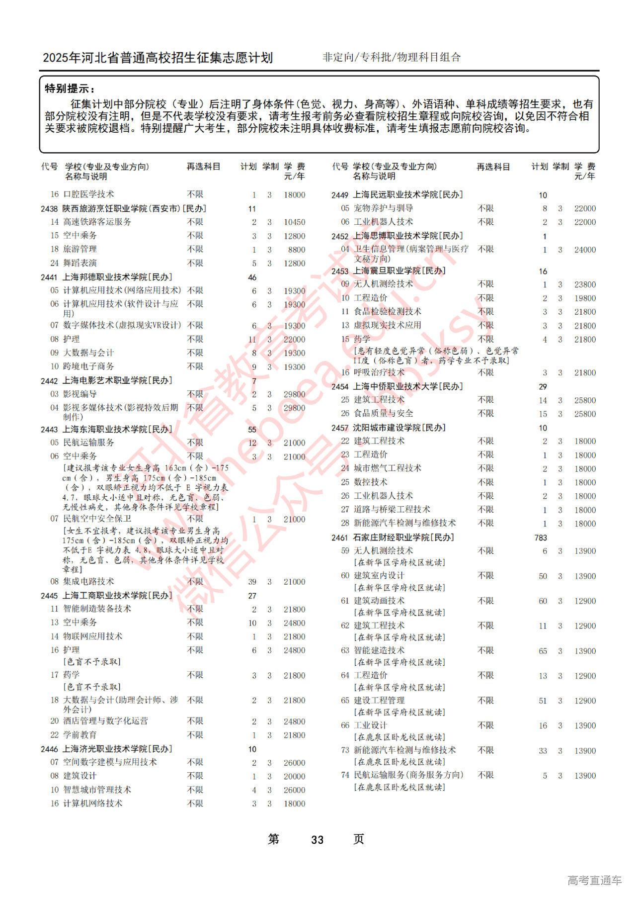 六、考生身体条件以高考体检表记载为准。部分院校专业对考生的身高、体重、视力、色觉、单科成绩等有要求,部分院校学费较高,请考生认真查阅拟填报院校招生章程或咨询院校。