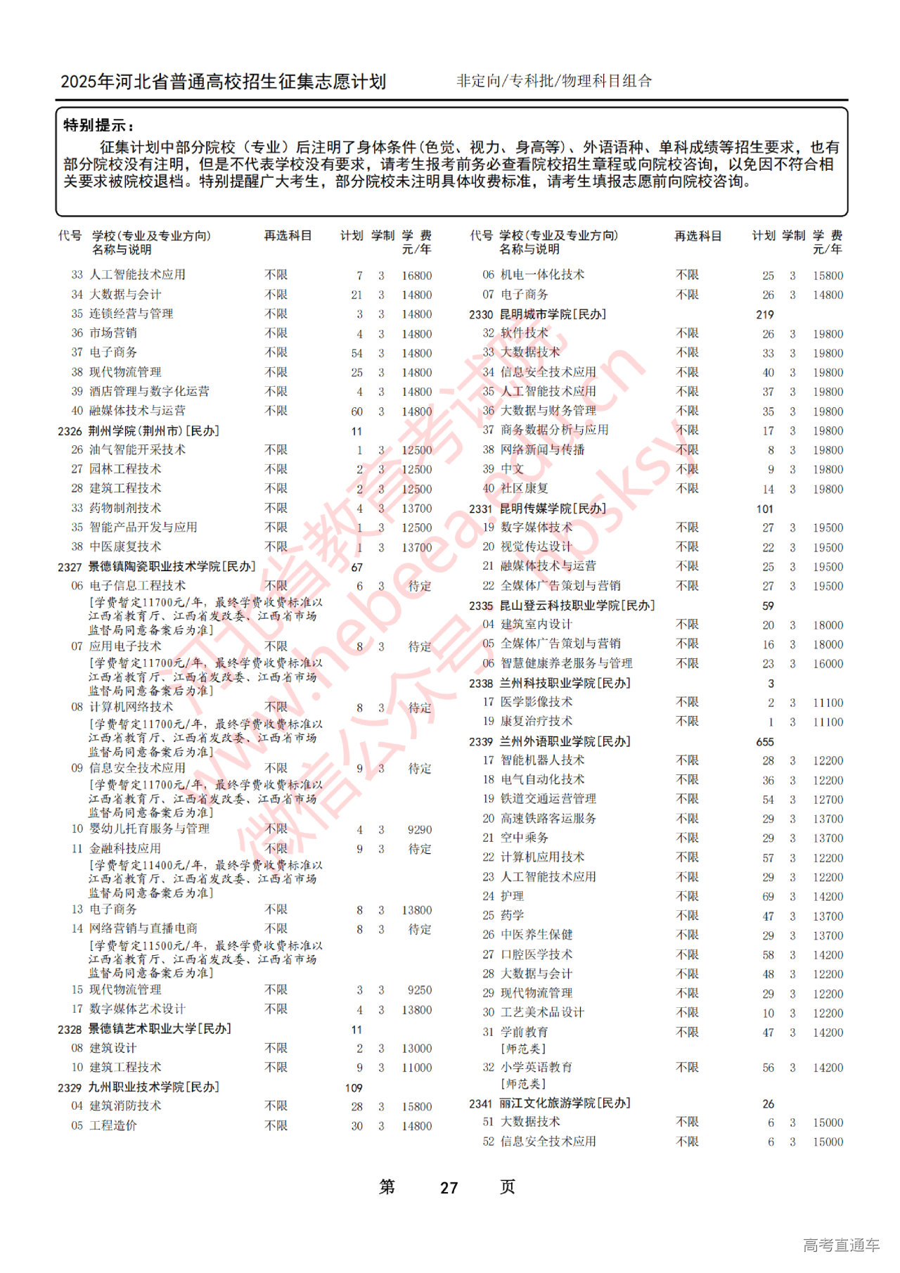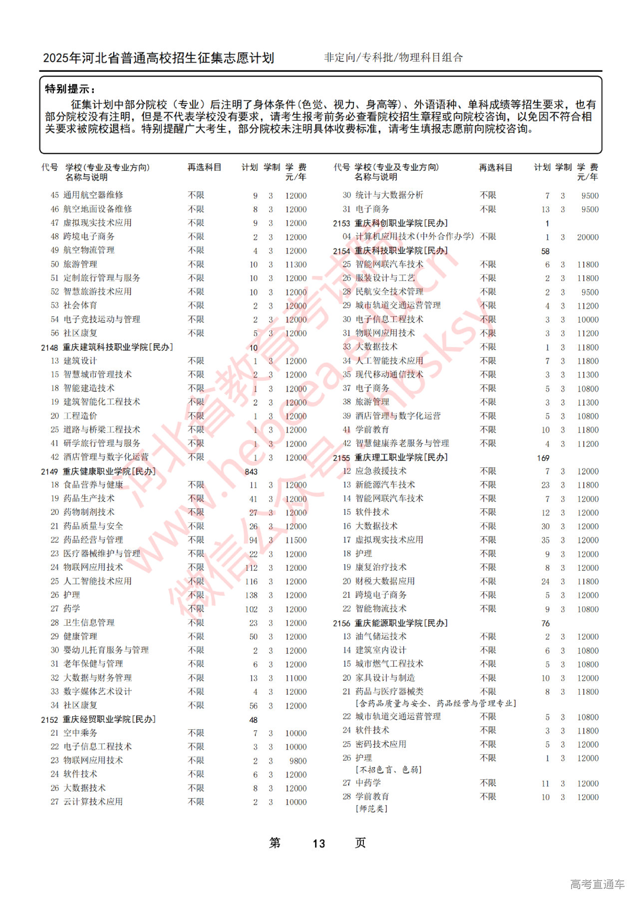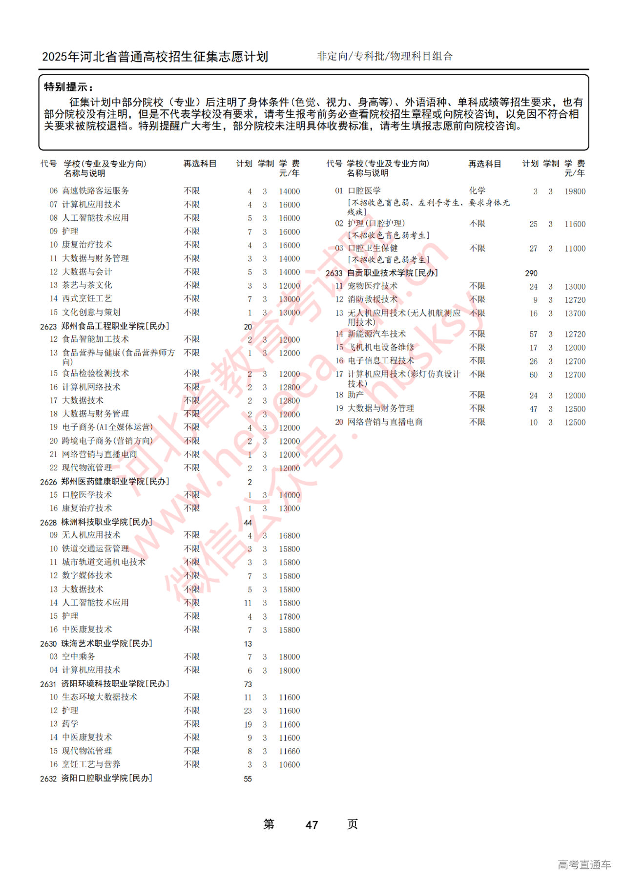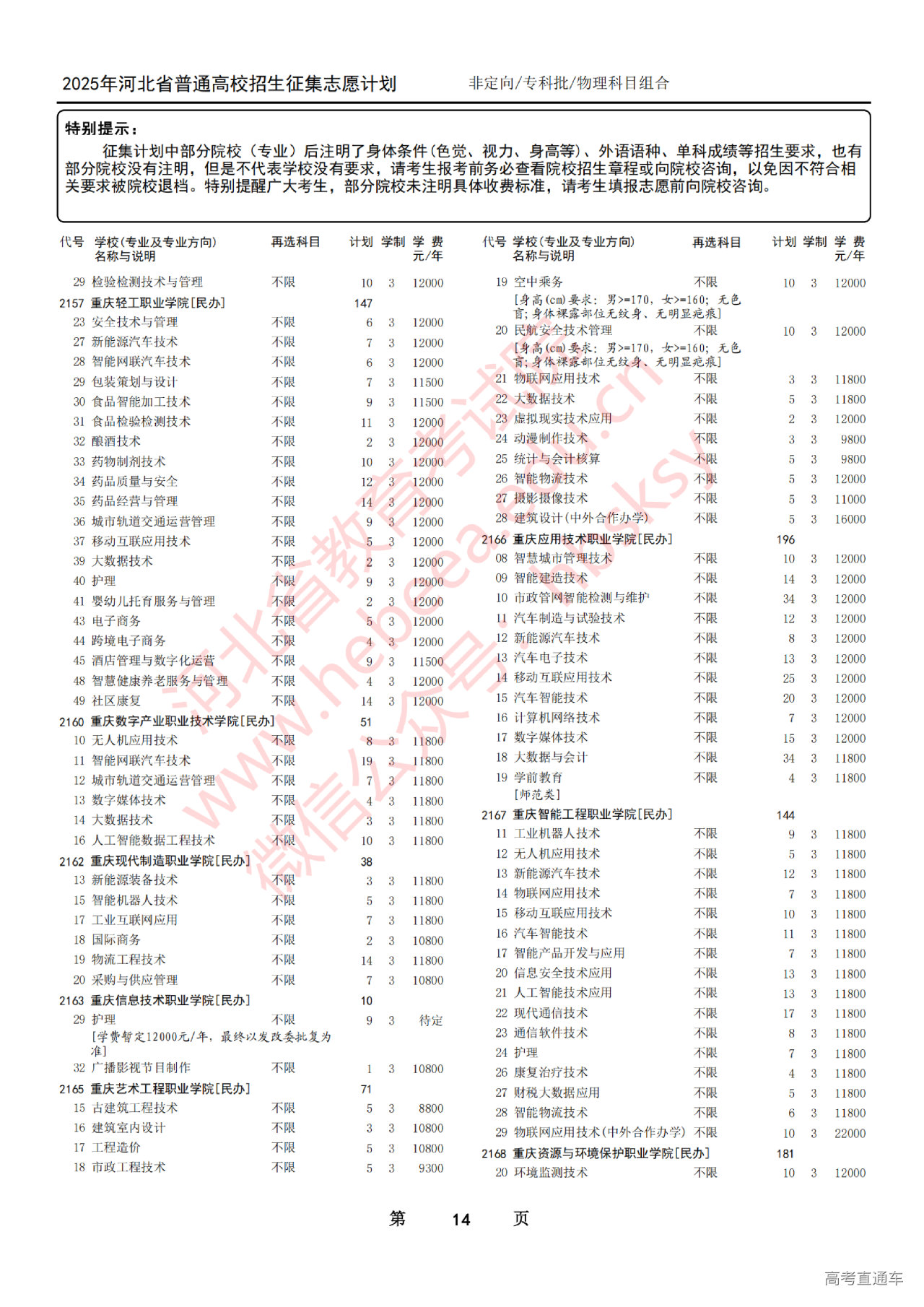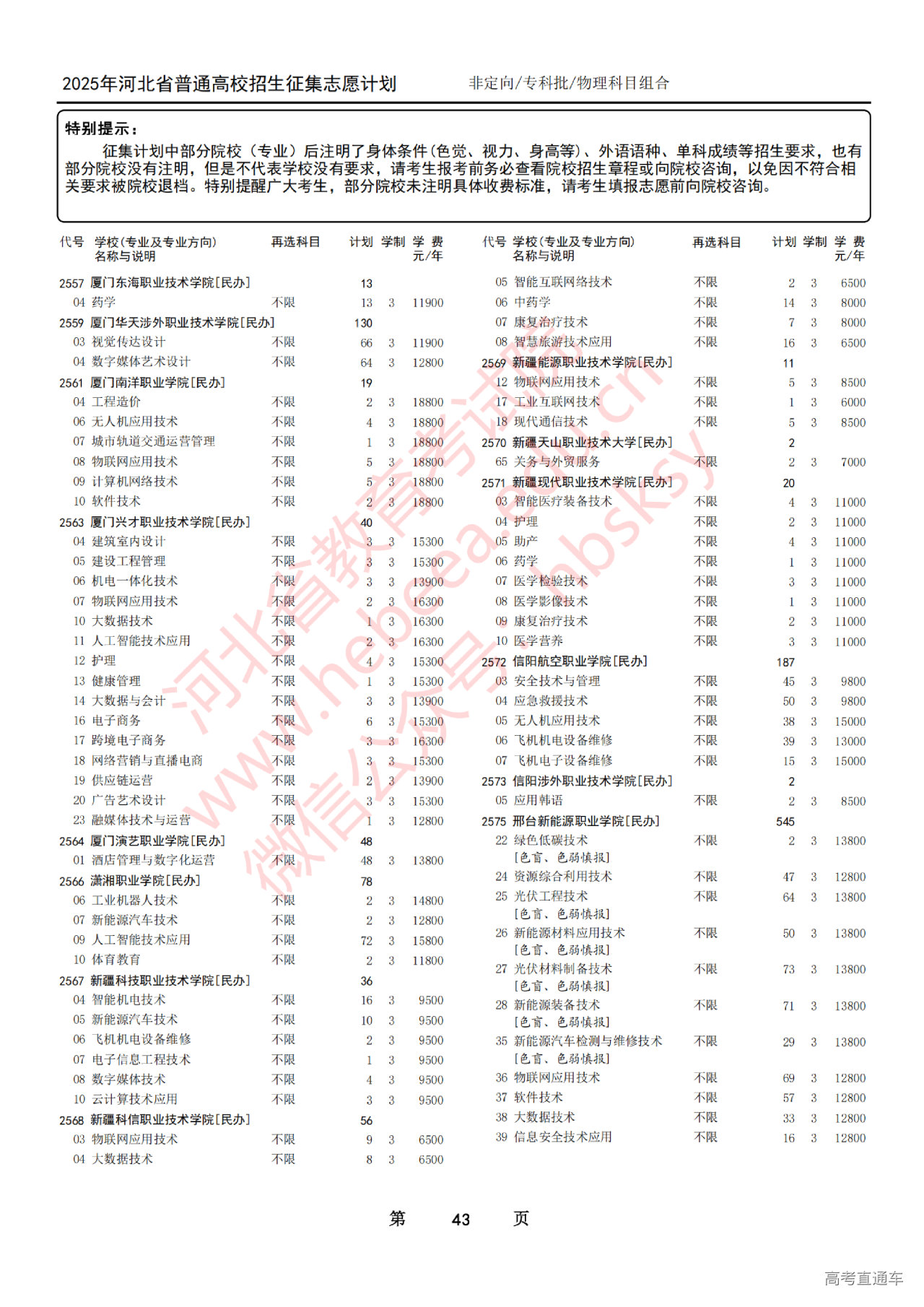 六、考生身体条件以高考体检表记载为准。部分院校专业对考生的身高、体重、视力、色觉、单科成绩等有要求,部分院校学费较高,请考生认真查阅拟填报院校招生章程或咨询院校。