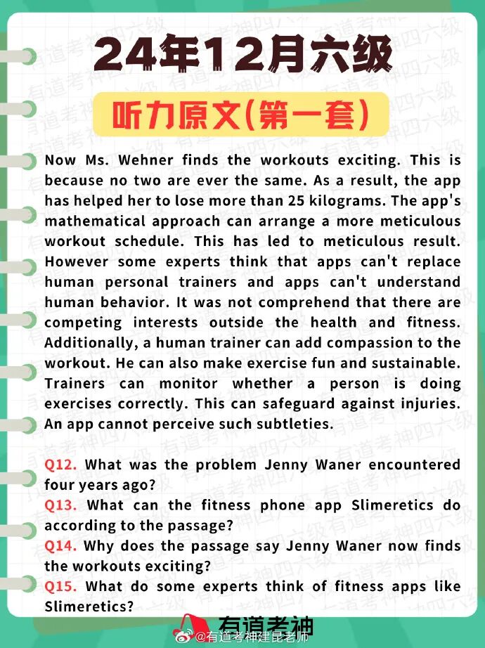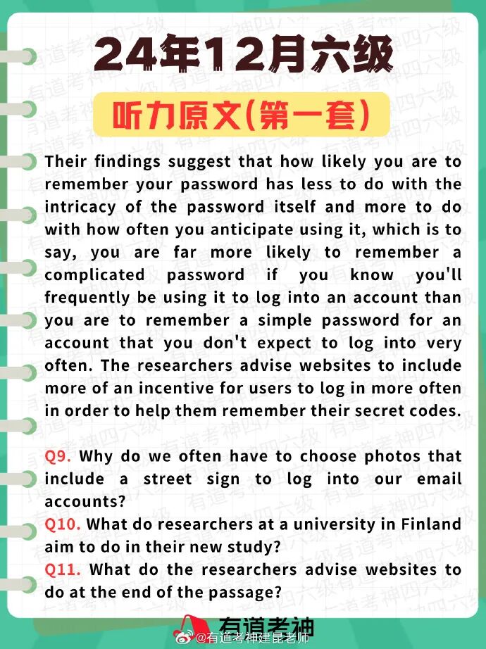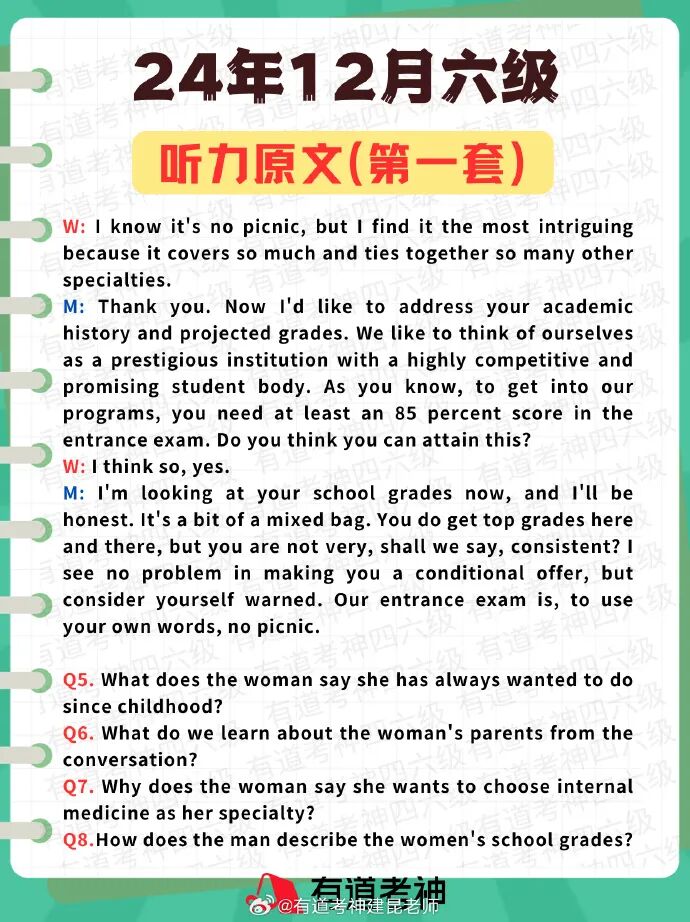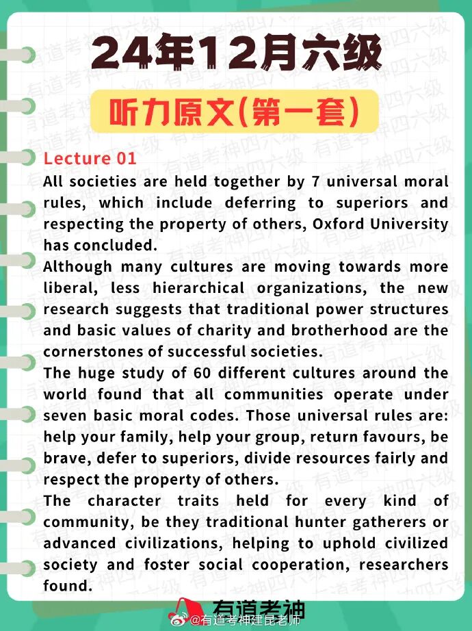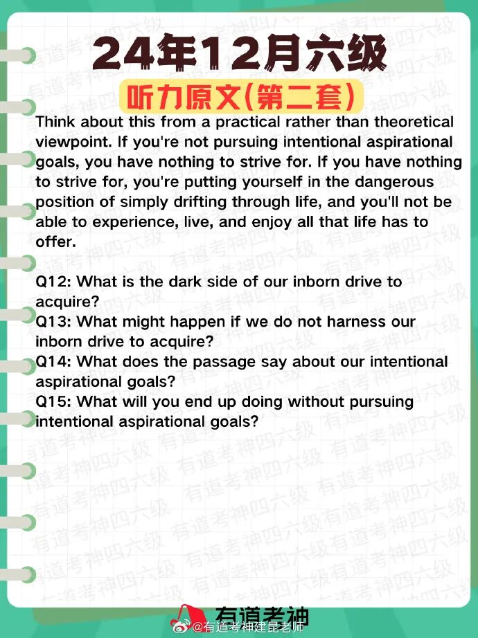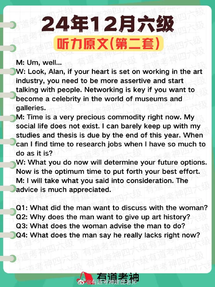 相关链接:2024年12月全国大学英语四六级真题及参考答案汇总