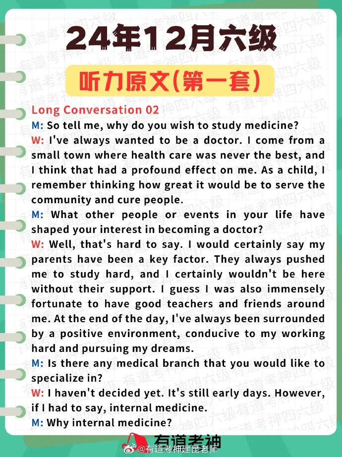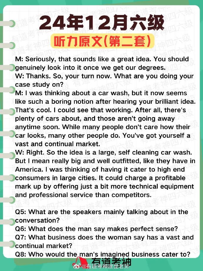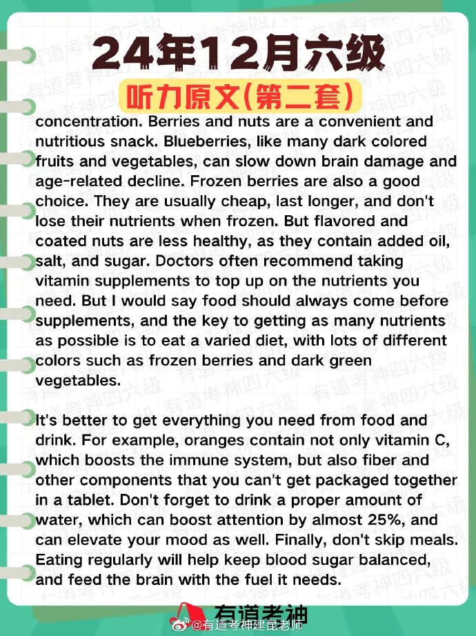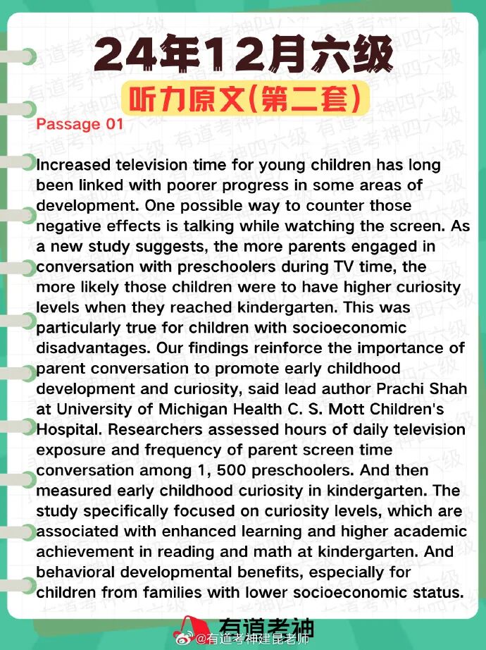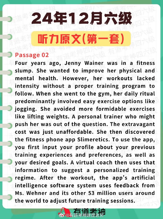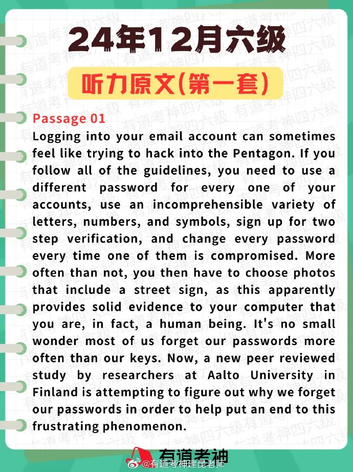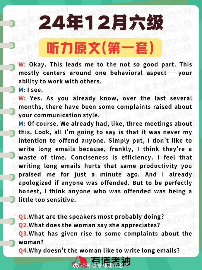 相关链接:2024年12月全国大学英语四六级真题及参考答案汇总
